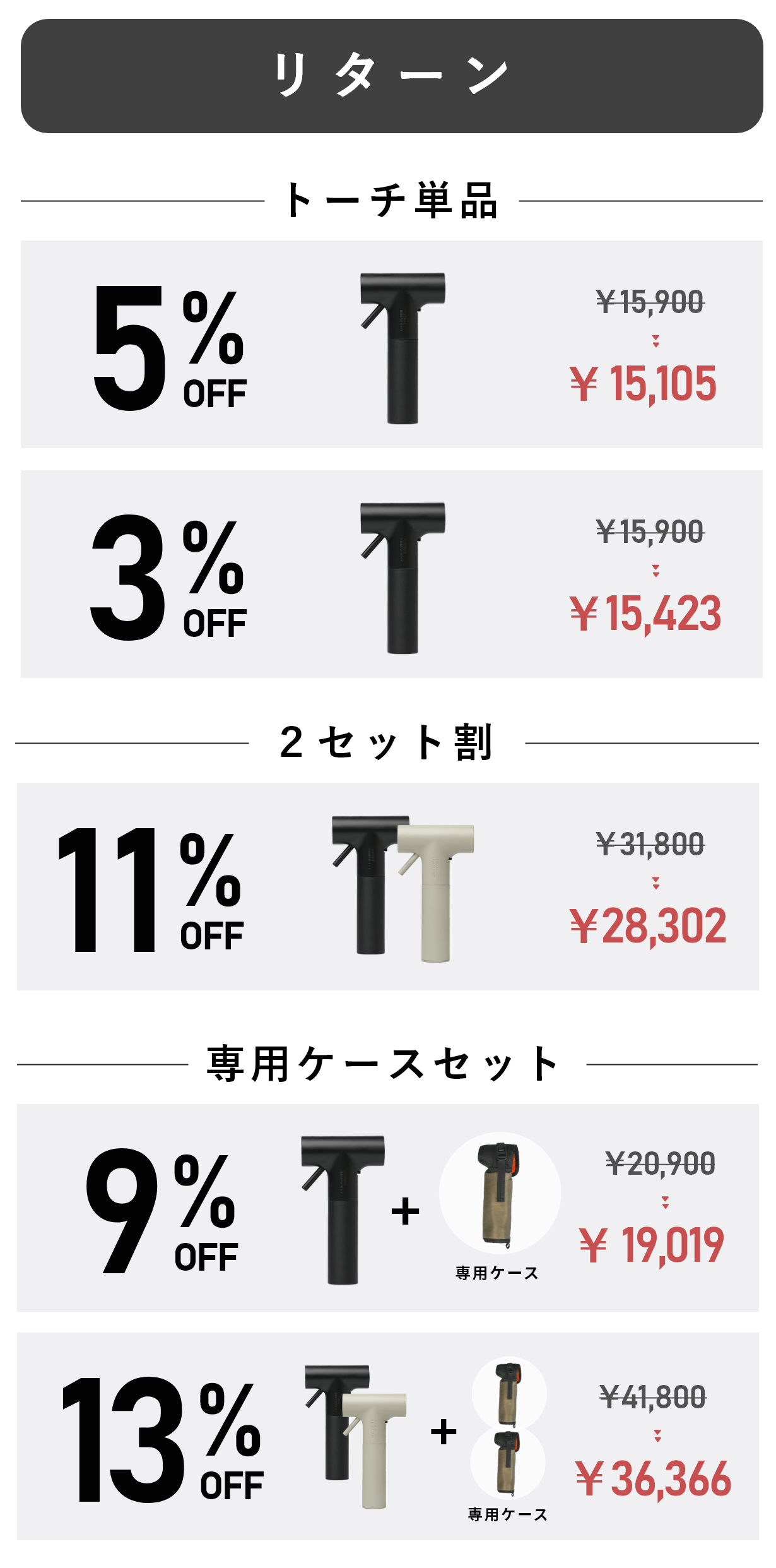 *リターン品の配送が完了するまで、TTorchの日本における独占販売権を有する正規代理店です。