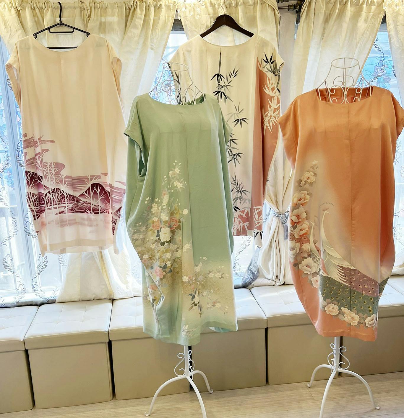 サロンでは着物リメイク作品の展示販売会やオーダーのお客様との商談コーナーにもなっています。