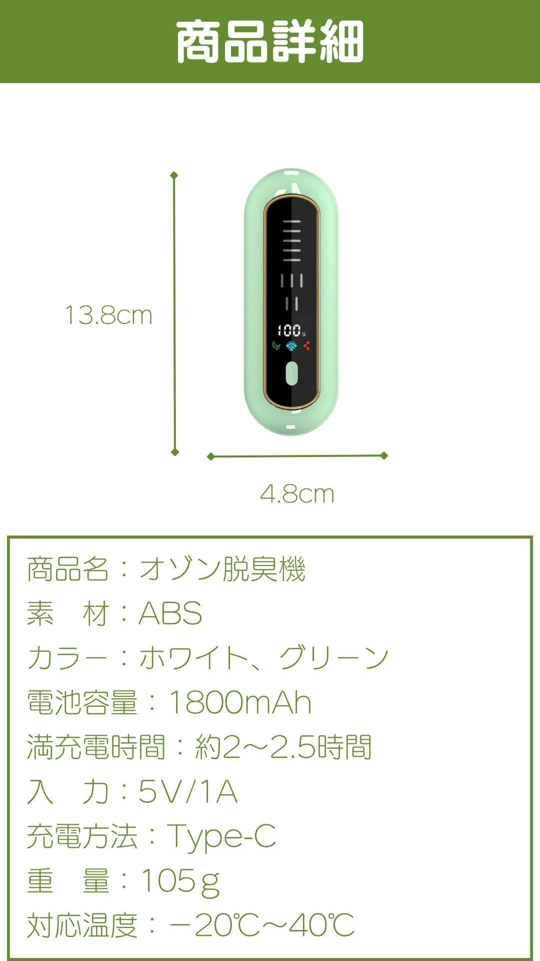 コンパクトなサイズが特長で、どこにでも簡単に置けます。例えば、冷蔵庫の棚の隅やドアポケットにスッと収まり、スペースを無駄にしません。また、キッチンやクローゼット、車の中など、さまざまな場所でも便利に使用できます。軽量設計なので、持ち運びも簡単で、必要な場所にすぐに設置可能です。省スペースでありながら高い脱臭効果を発揮するこのオゾン脱臭機は、どんな場所でも清潔な環境を保つのに役立ちます。