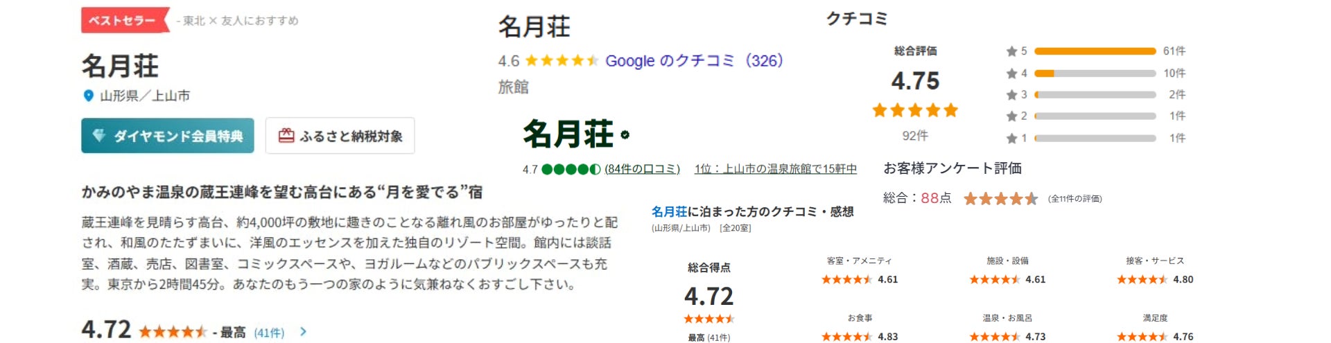 ありがたいことに、多くの予約サイトで高評価をいただけております!