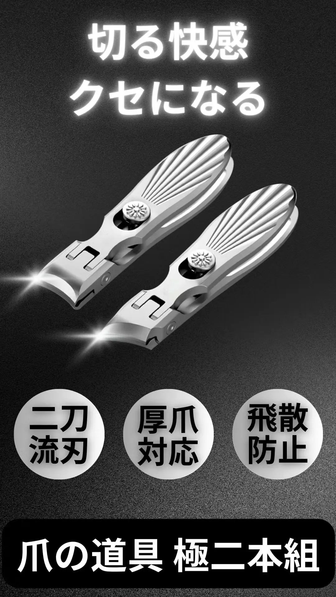 爪切り二本組『Twin Edge』があれば、上記の悩みを簡単に解消します。