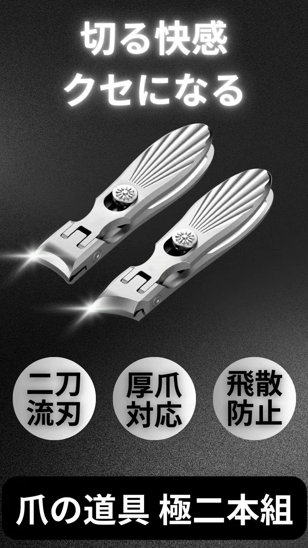 そこで誕生したのが、爪切り二本組『Twin Edge』です。曲線刃と斜め刃の“二刀流”で、手・足・巻き爪・ささくれなど幅広く対応。さらに飛び散りにくい刃構造、水洗い可能な高耐久素材、ロック付き折りたたみ設計など、快適さにもこだわり抜きました。