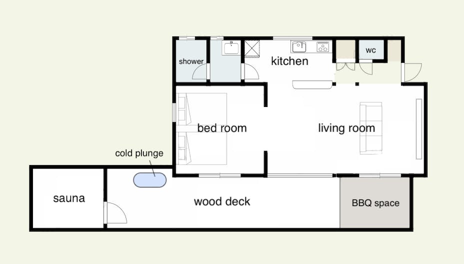 寝室の窓からサウナ室を眺めることができるのも個人的に気に入っているポイントです。