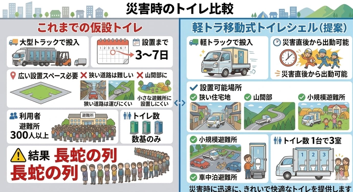 「軽トラックで運べる“移動式トイレシェル”をつくろう。」