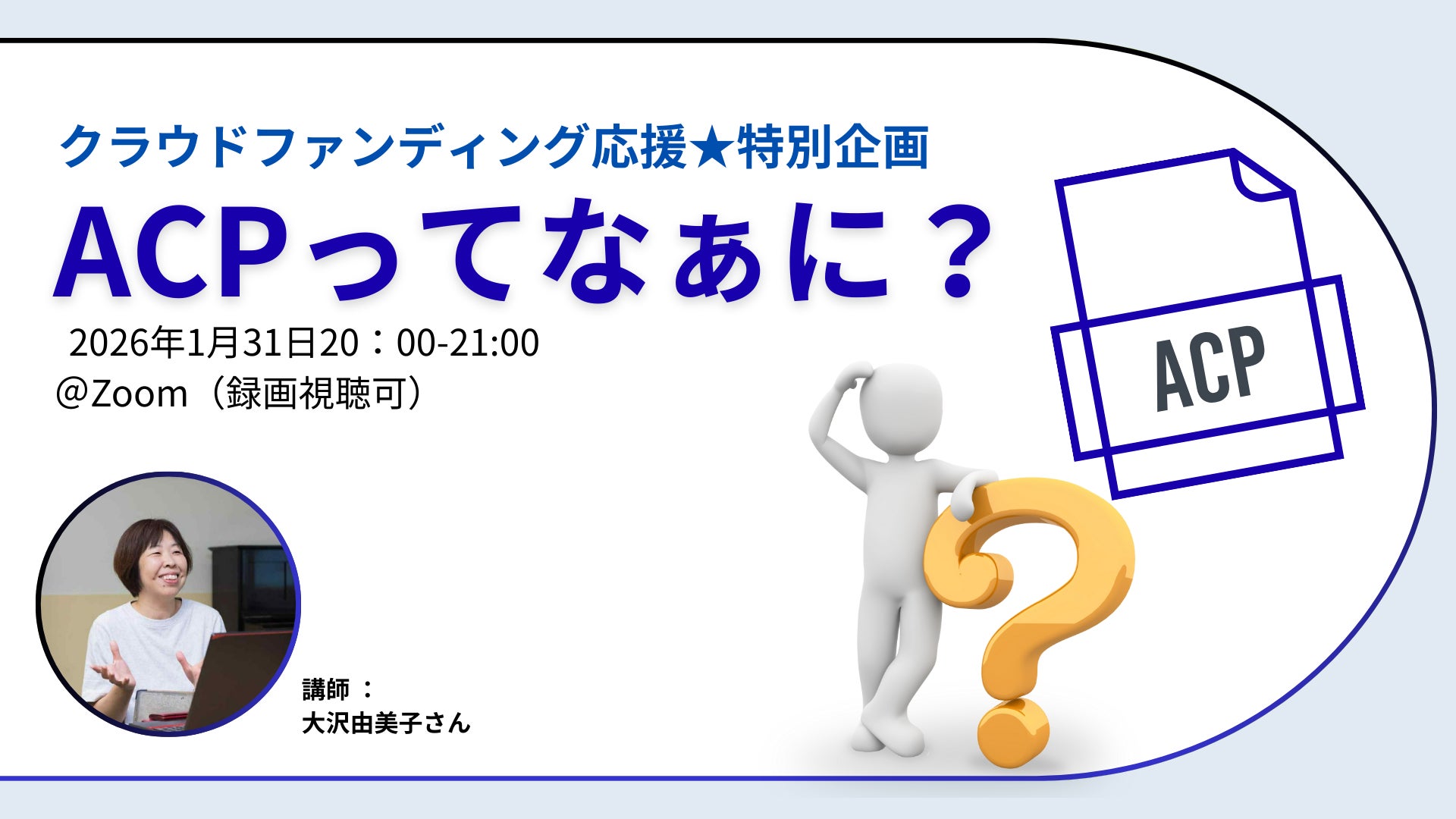 1月30日、看護師・大沢由美子さんを講師にお迎えし、ACP(人生会議)をテーマにした約1時間のオンライン講座を開催しました。