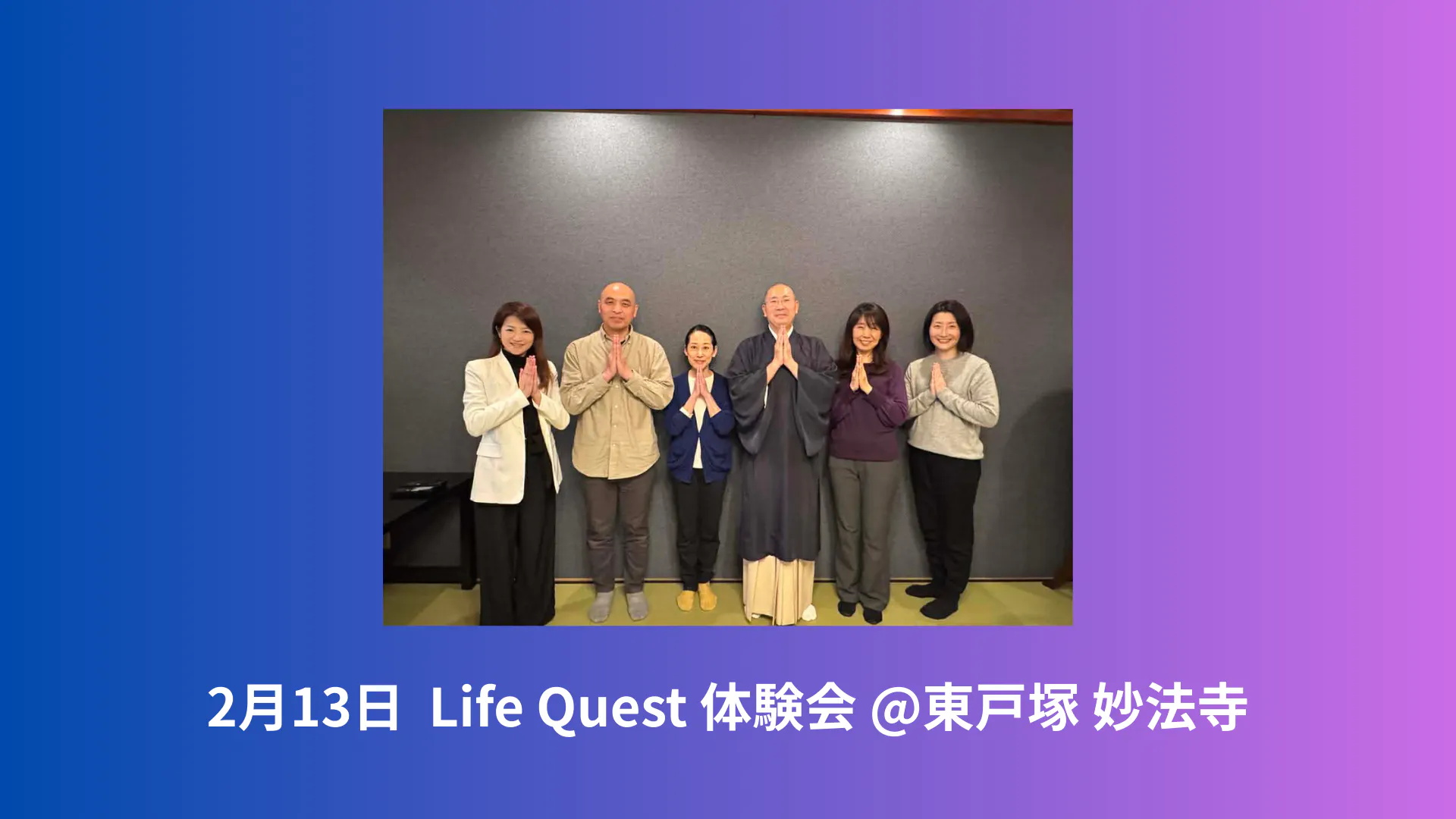 2月18日の体験会に藤井隆英さん(曹洞宗僧侶)が登壇!