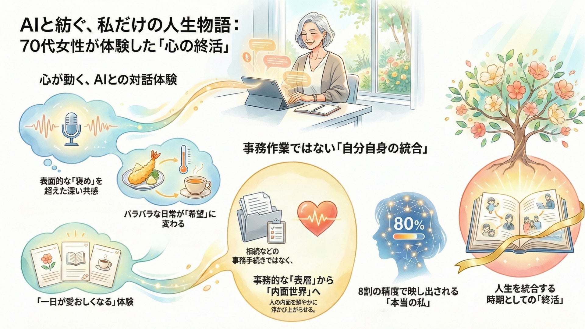 - 今回のAIエンディングノートは「人の内面世界を鮮やかに浮かび上がらせる」もので、性質が根本的に異なる。