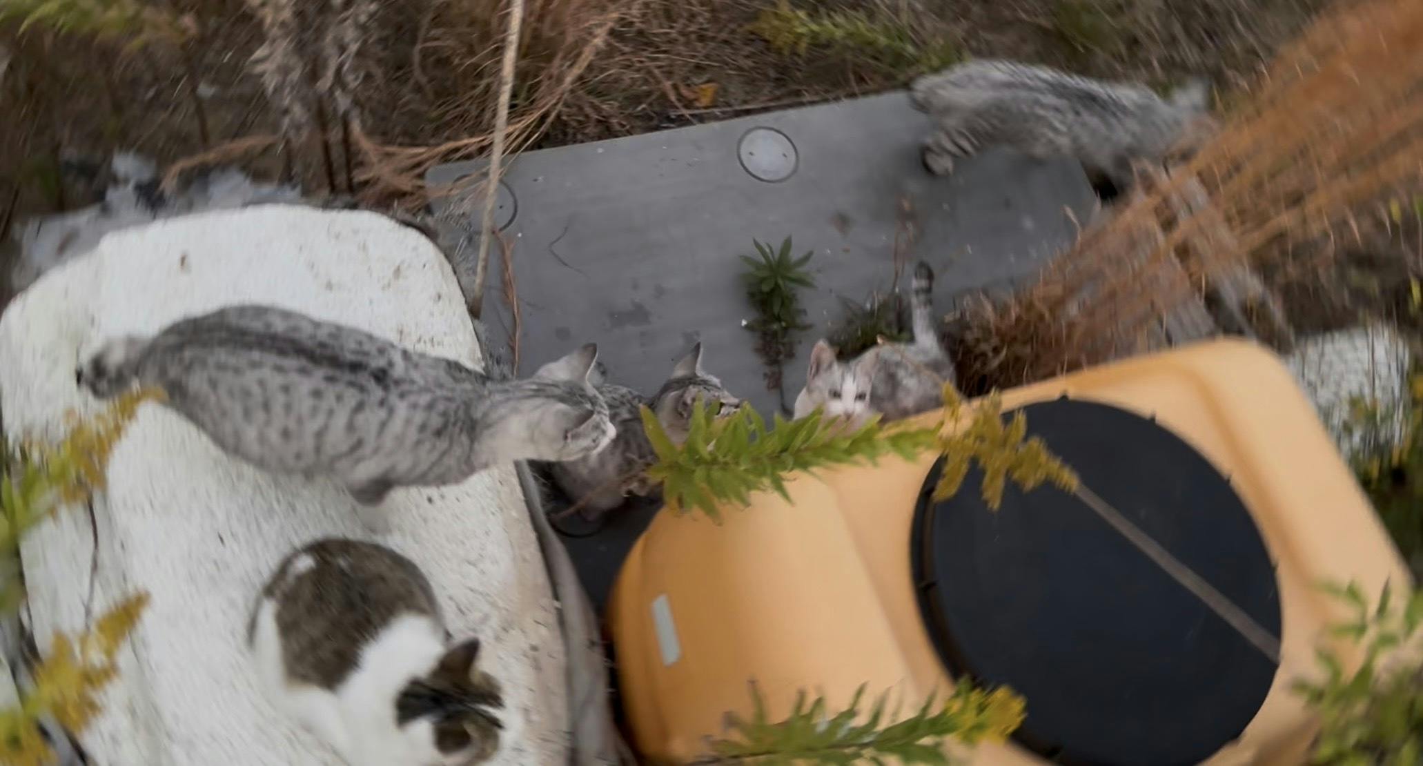 昨年、釣りに行った際に7匹の家族猫に出会いました。