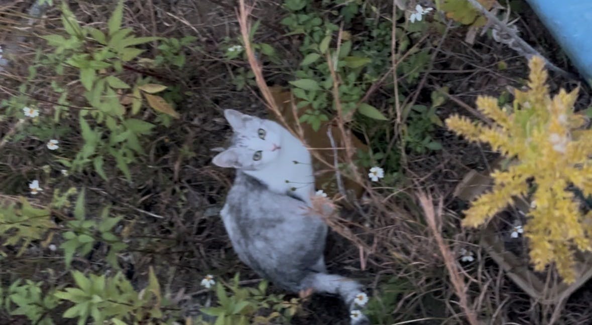 現地に行く都度、いつも一緒にいる子猫