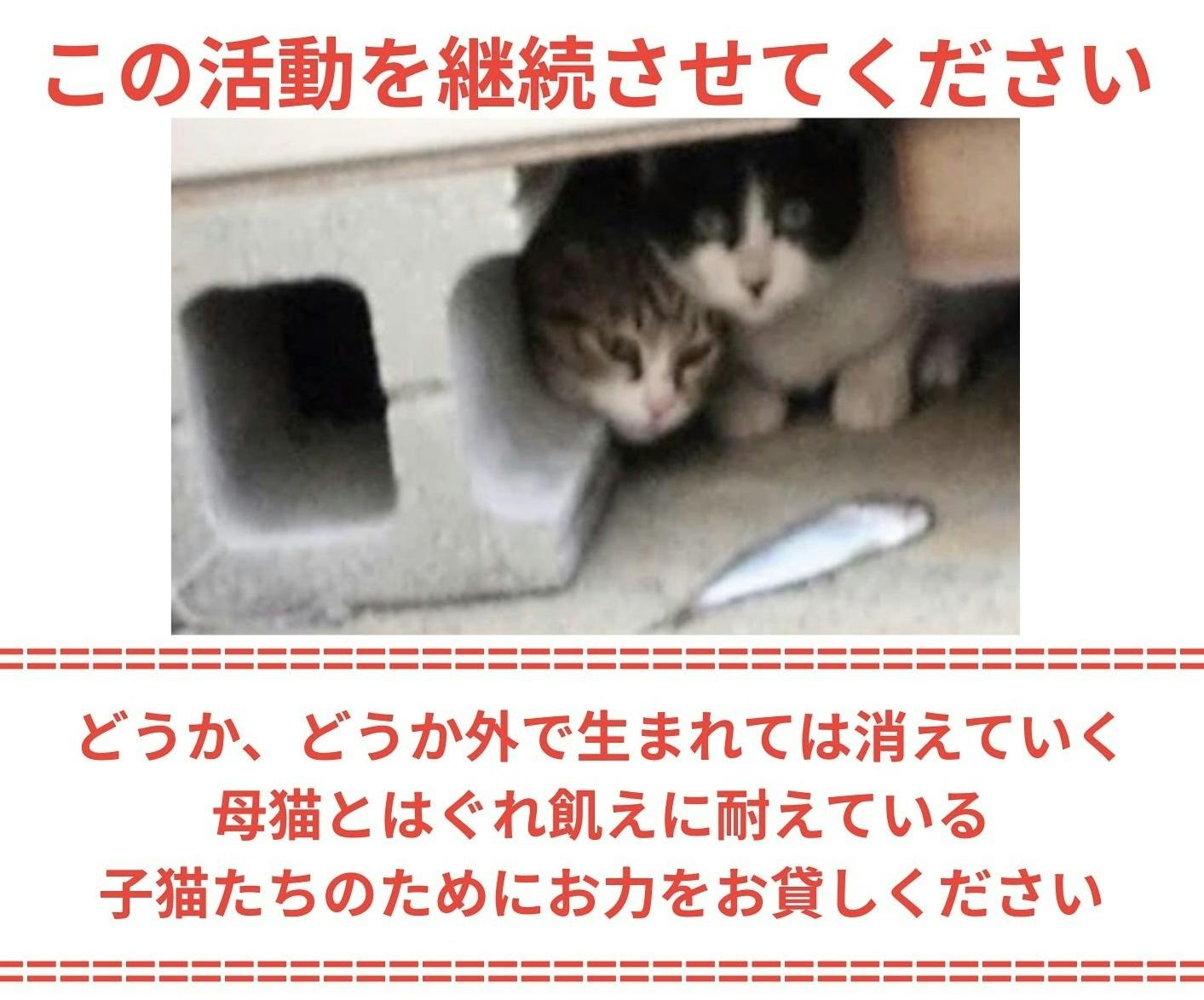 そこで今回、2回目のクラウドファンディングに挑戦します!どうか…目の前の猫を救うために皆様のお力をお貸しいただけないでしょうか。