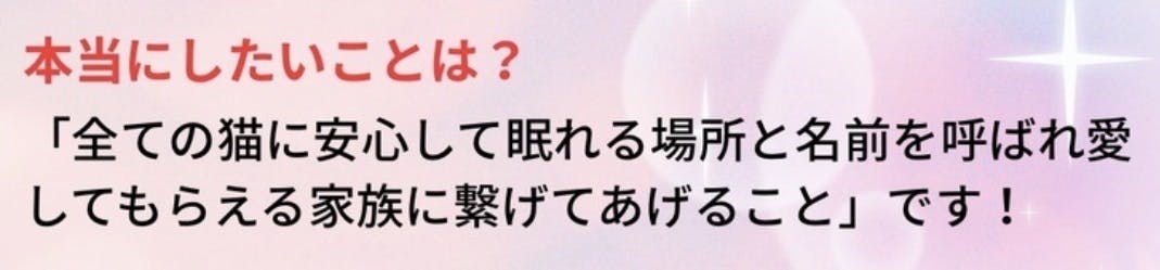 外で暮らす小さな命のために最後まで諦めずに頑張りますでよろしくお願い致します。