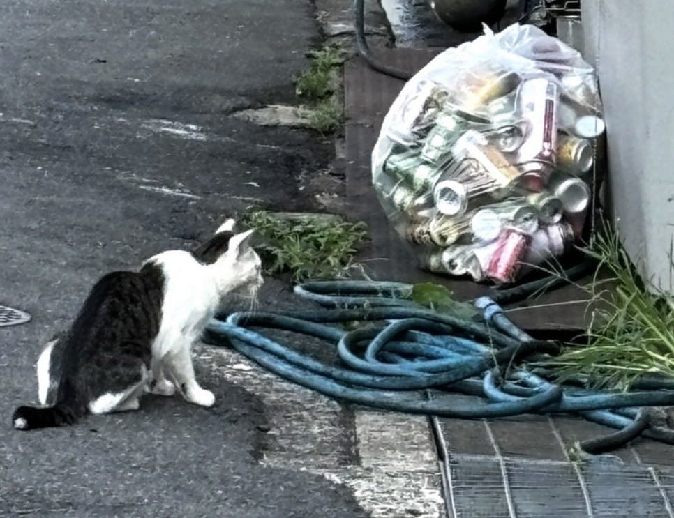 職場の裏のガレージに野良猫が来るようになりました。
