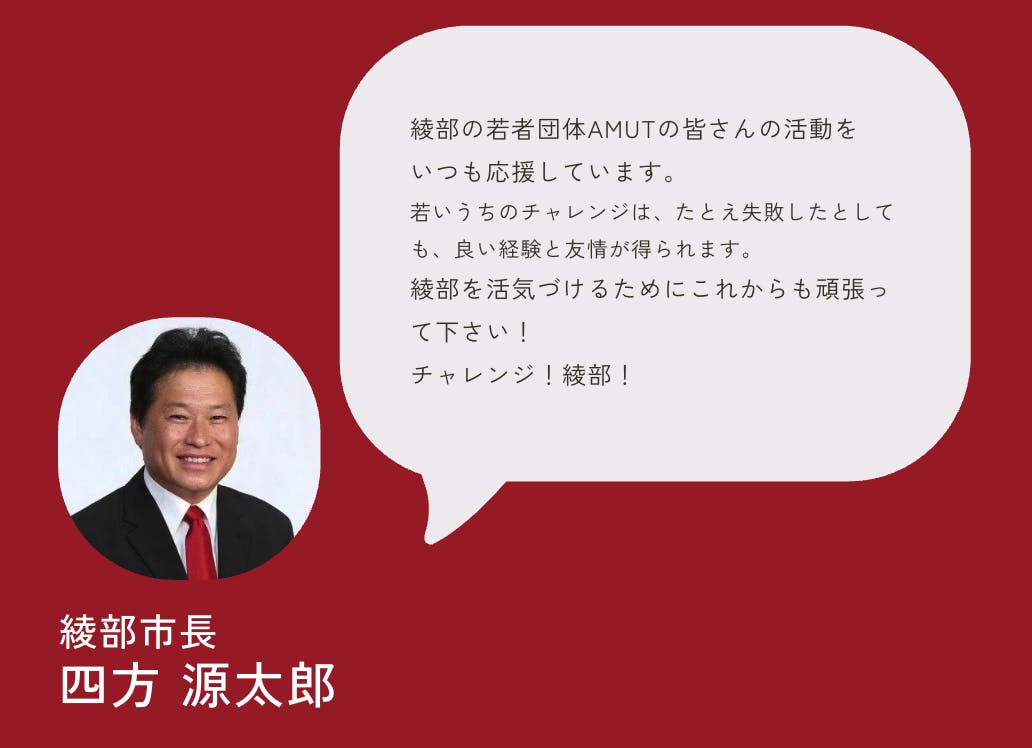 私も綾部出身ですので、アミュートの皆様と共に綾部を盛り上げて行きたいです!