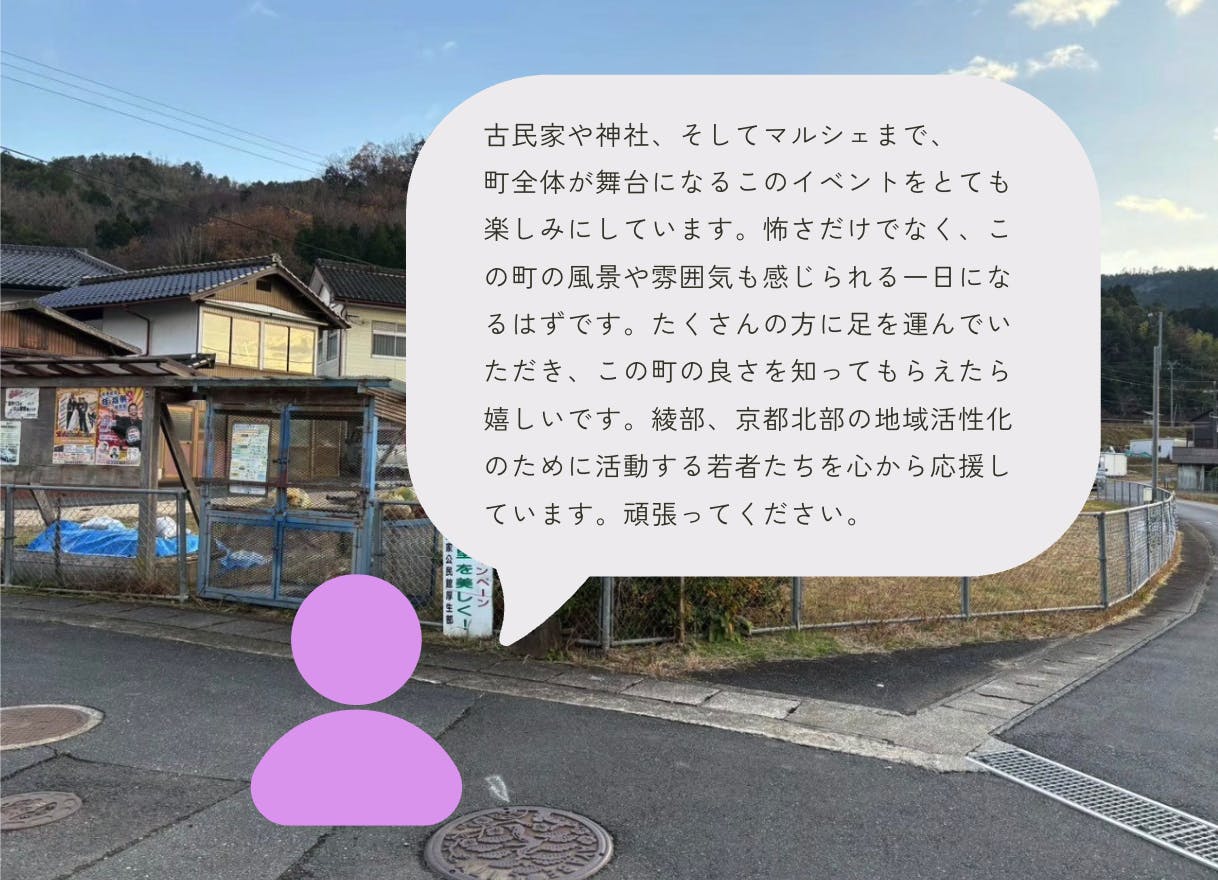 このイベントは、綾部の中で生まれた、まだ小さな挑戦の途中経過です。