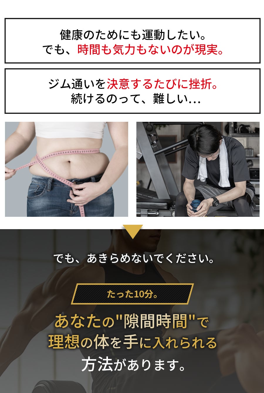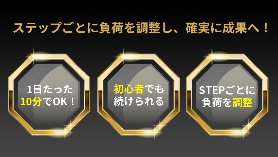 A:1日10分 × 週3~5回のトレーニングを継続することで、体の変化を実感される方もいらっしゃいます。