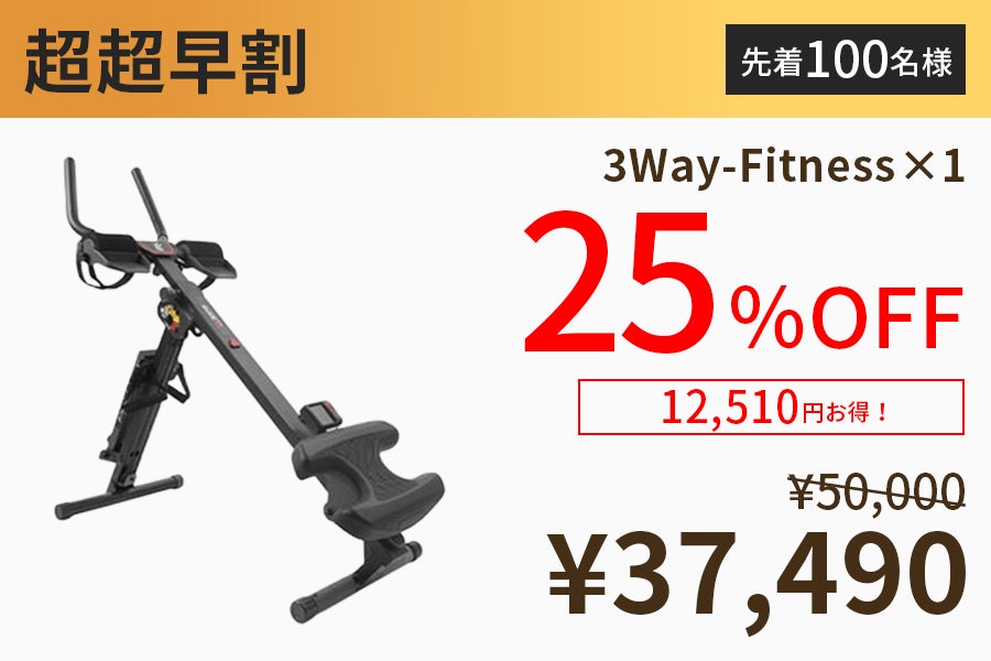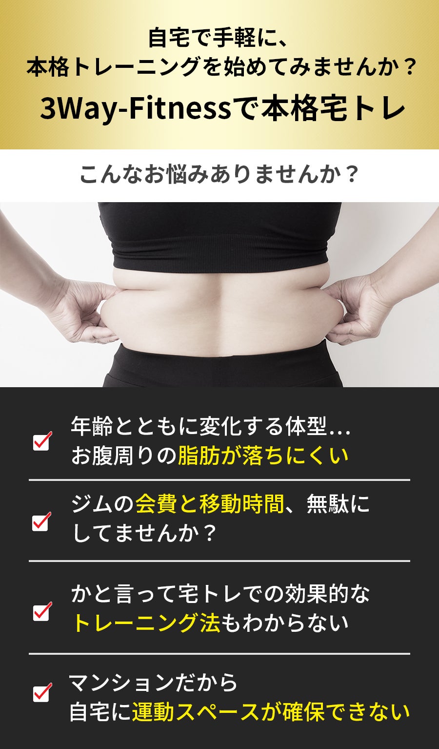 90日間本格プログラム付きの3Way-Fitnessなら、短時間で効率的に体幹を鍛え、理想の体へ最速アプローチできます。