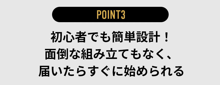 A:たった10分で完成します!工具は一切不要で、1人でも簡単に組み立てられます。分かりやすい説明書が付いているので、初心者さんでも迷うことなくセットアップできます。操作画面に単4電池2つを入れて、すぐに使い始められます!