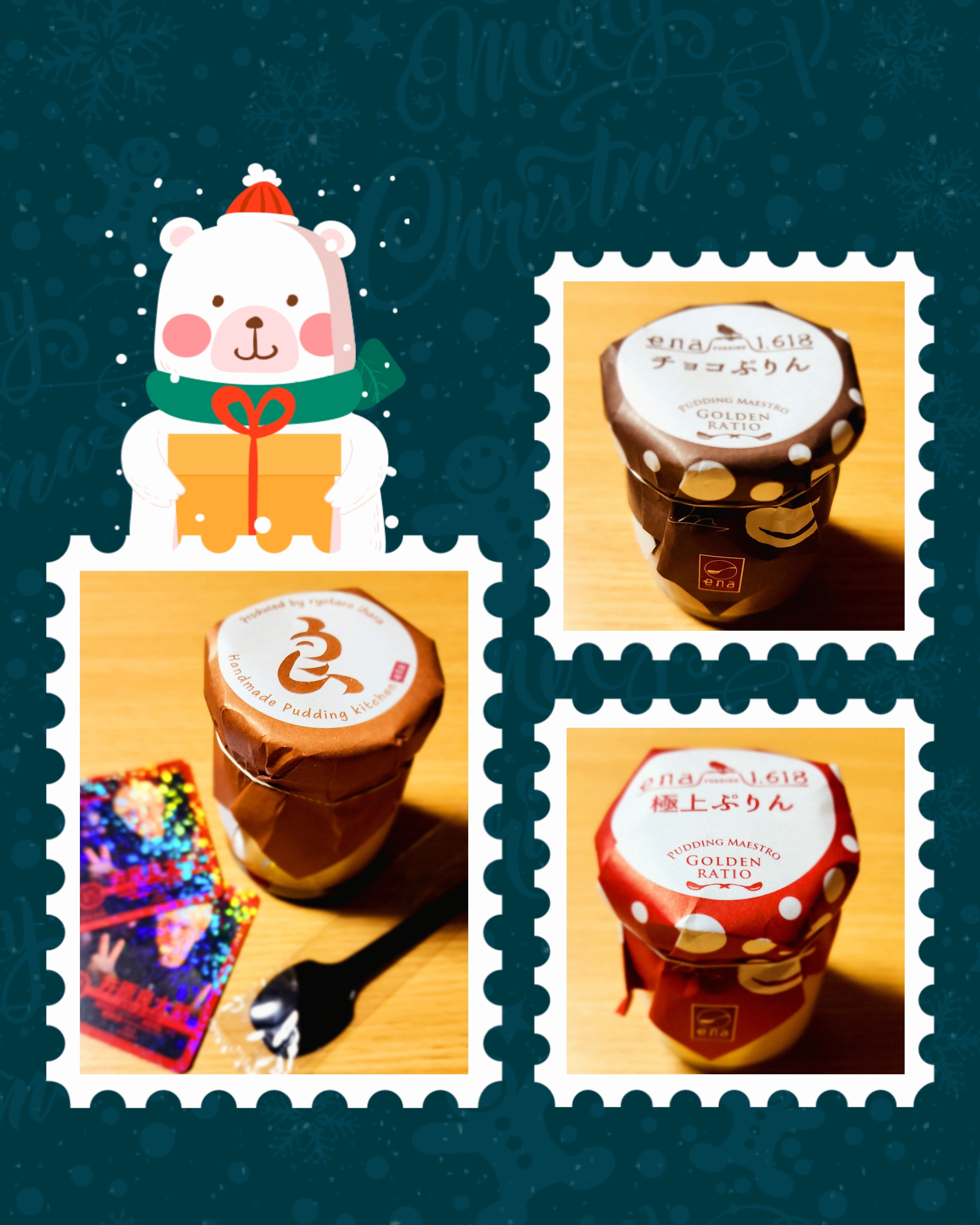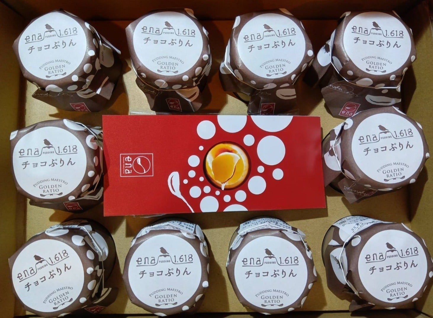 名称:洋生菓子 原材料名:牛乳、生クリーム(乳成分を含む)、卵、砂糖、バニラビーンズ(一部に乳成分・卵を含む)漢プリン)、カカオマス(チョコプリン)、抹茶粉末(日本茶プリン)