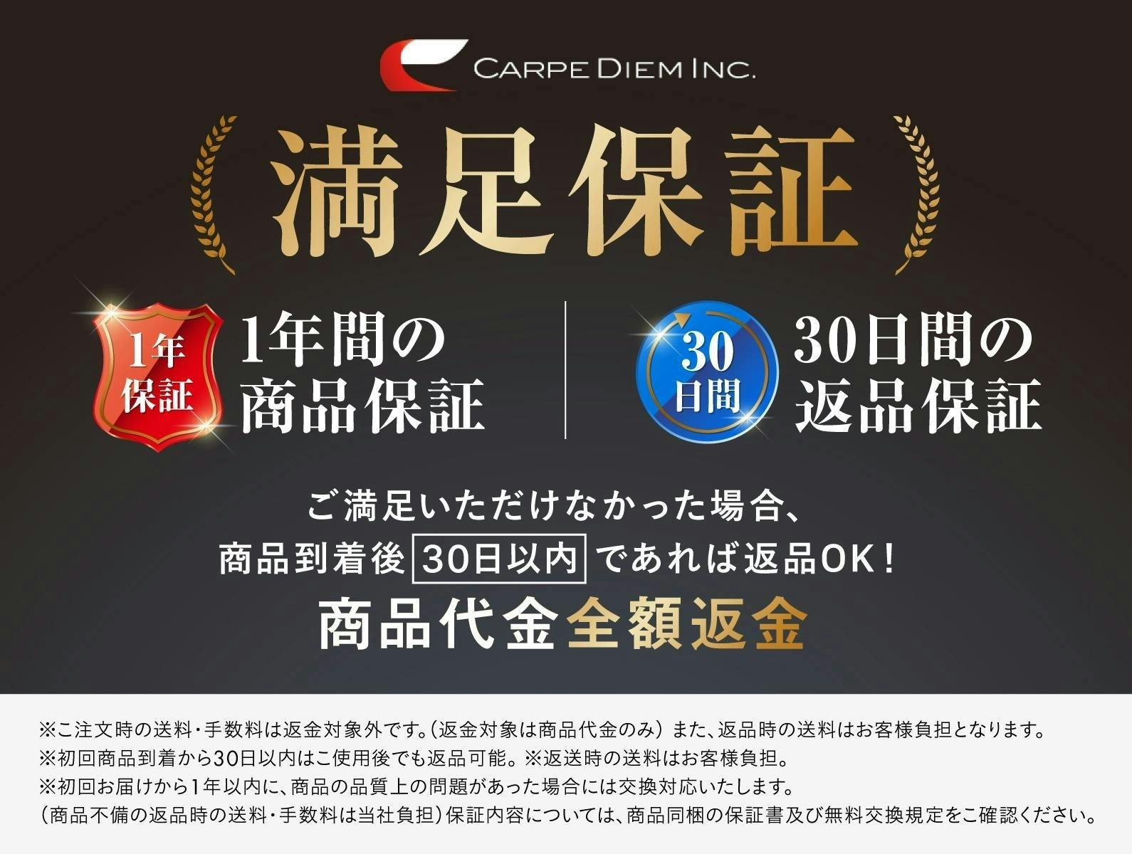 A:ご支援者の皆さまにご安心いただけるように「1年保証」にて対応しておりますので、(info@carpediemjp.com)にお問い合わせくださいませ。