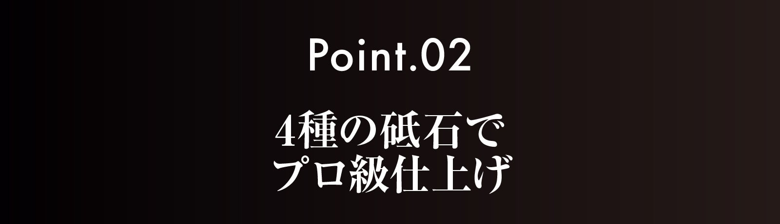 刃こぼれを直す荒砥から、新品同様にピカピカに磨き直せる鏡面仕上げまでを4種類の砥石で研磨可能です。