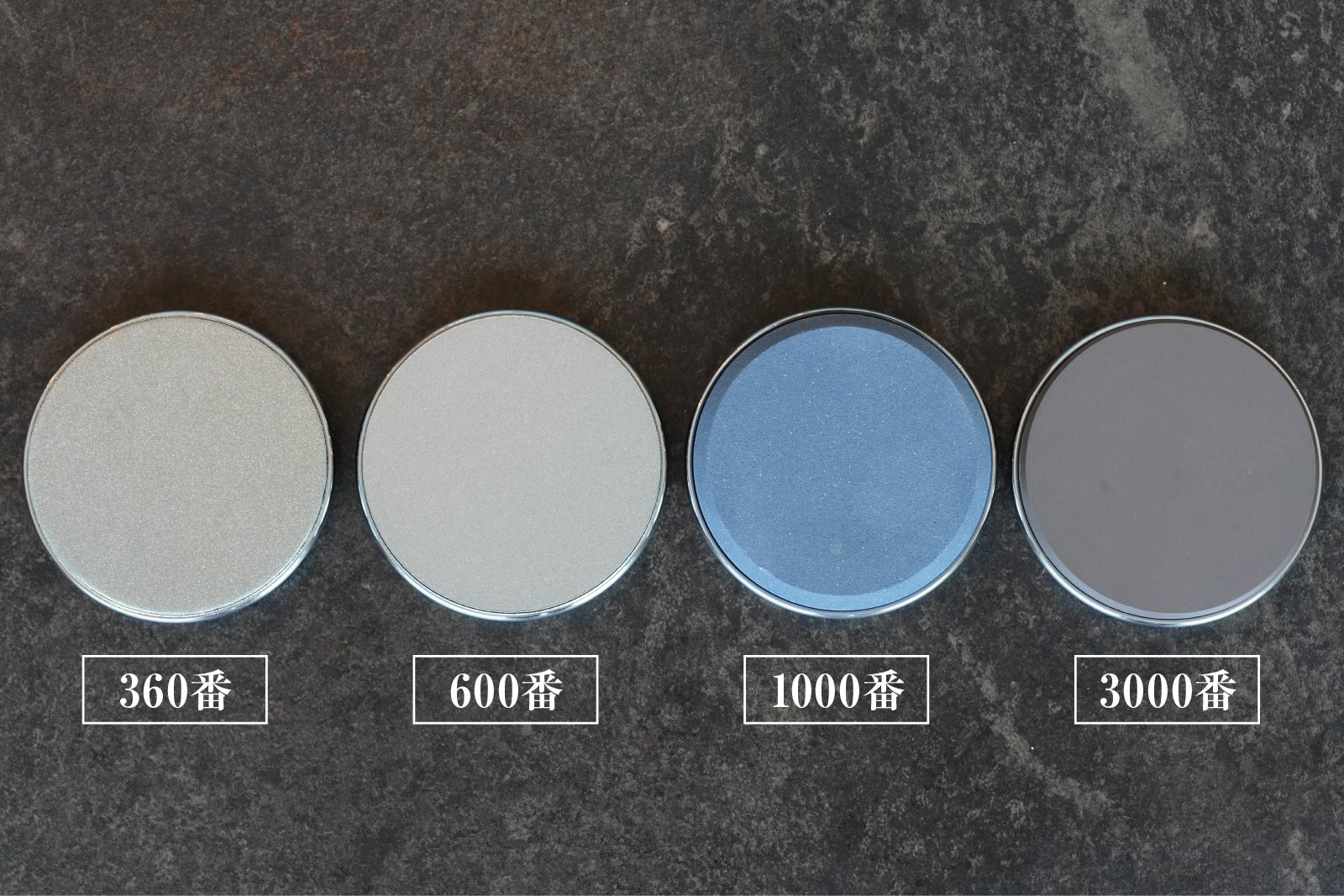 刃こぼれした刃のガタつきを整える荒砥には、360番手のダイヤモンド砥石