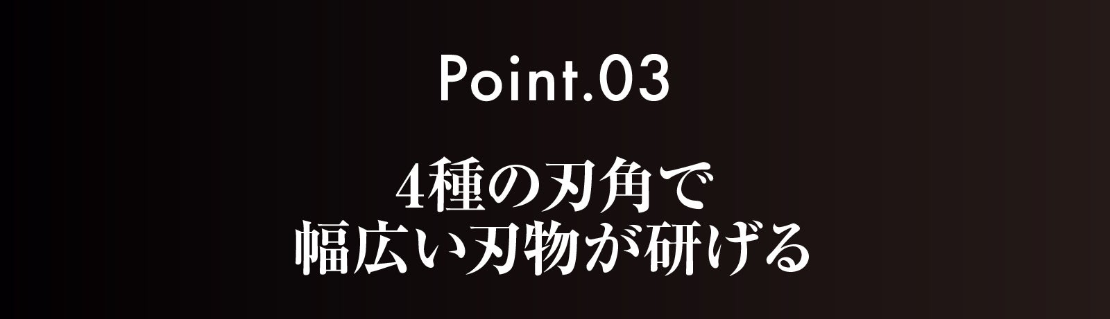 和包丁や洋包丁、アウトドアナイフ、ハサミまで幅広い刃物に対応できるように、全4種の刃角と砥石を搭載。