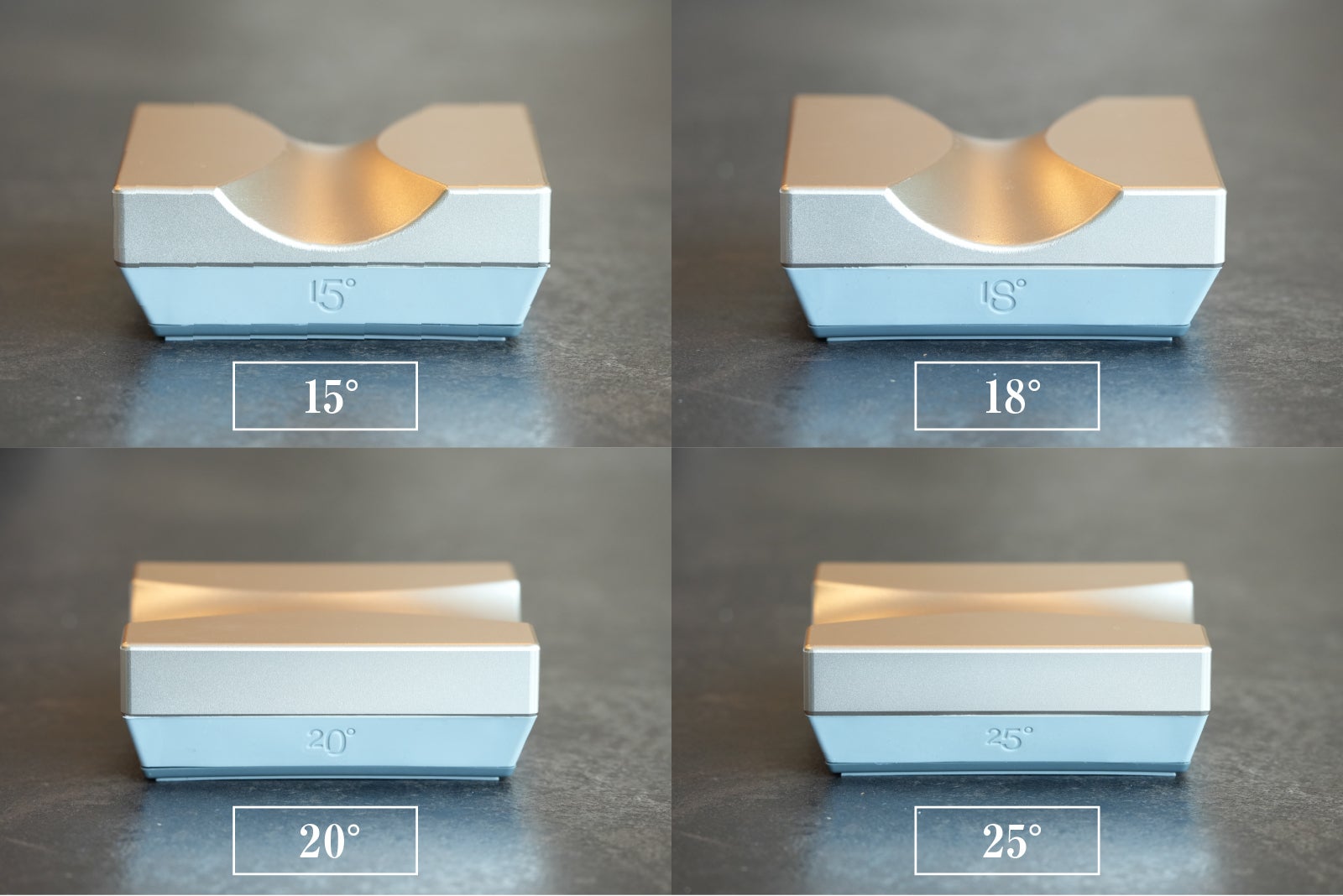 【KiruTone】のガイドの四方は、刃物の種類に合わせて最適な刃角が保てるように4種類の角度が付いています。