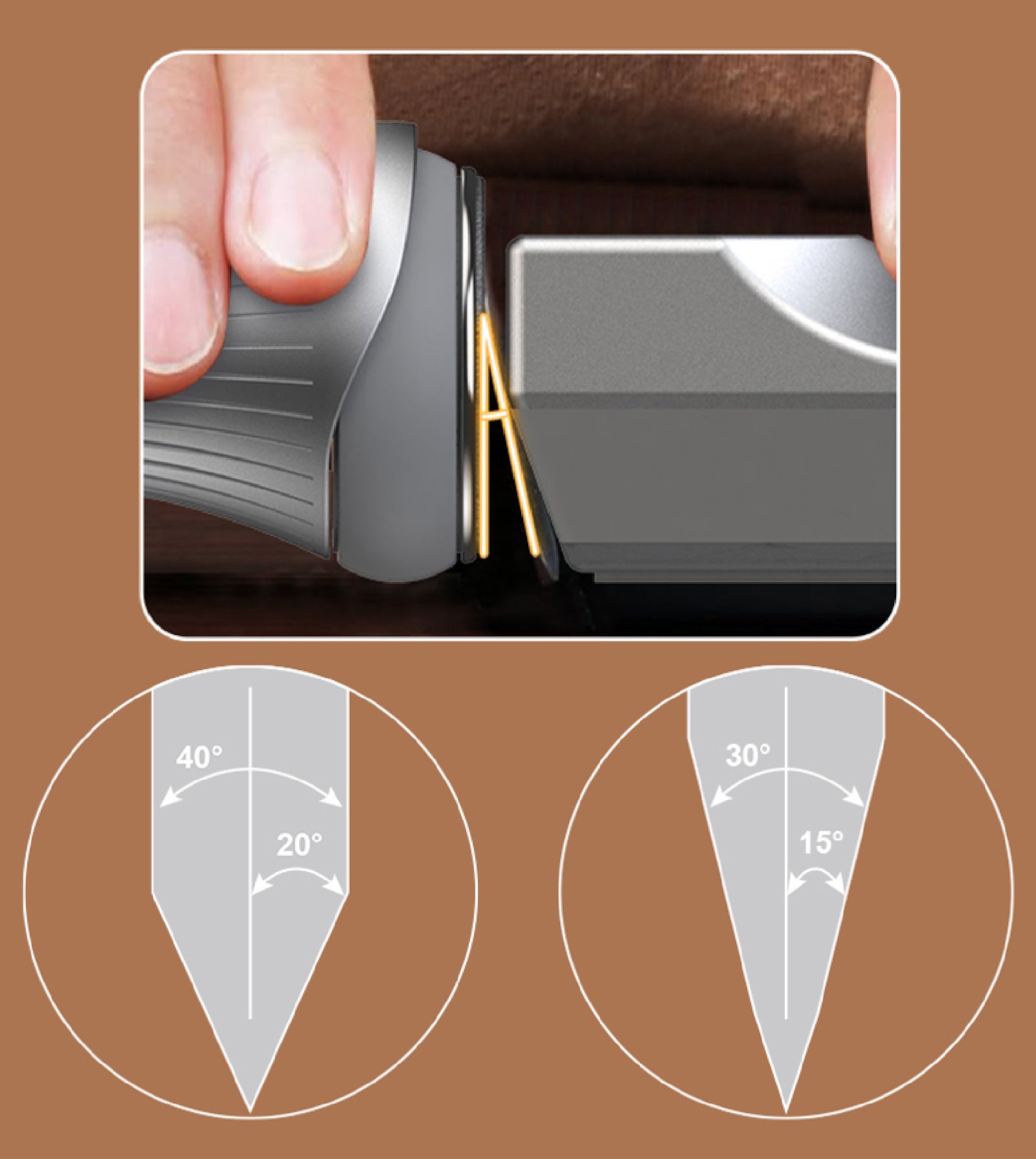 一般的な据え置き型のシャープナーのボディはプラスチック、同型のローラータイプは木製が多いのに対し、【KiruTone】のボディは丈夫で耐久性の高いアルミ合金を採用。