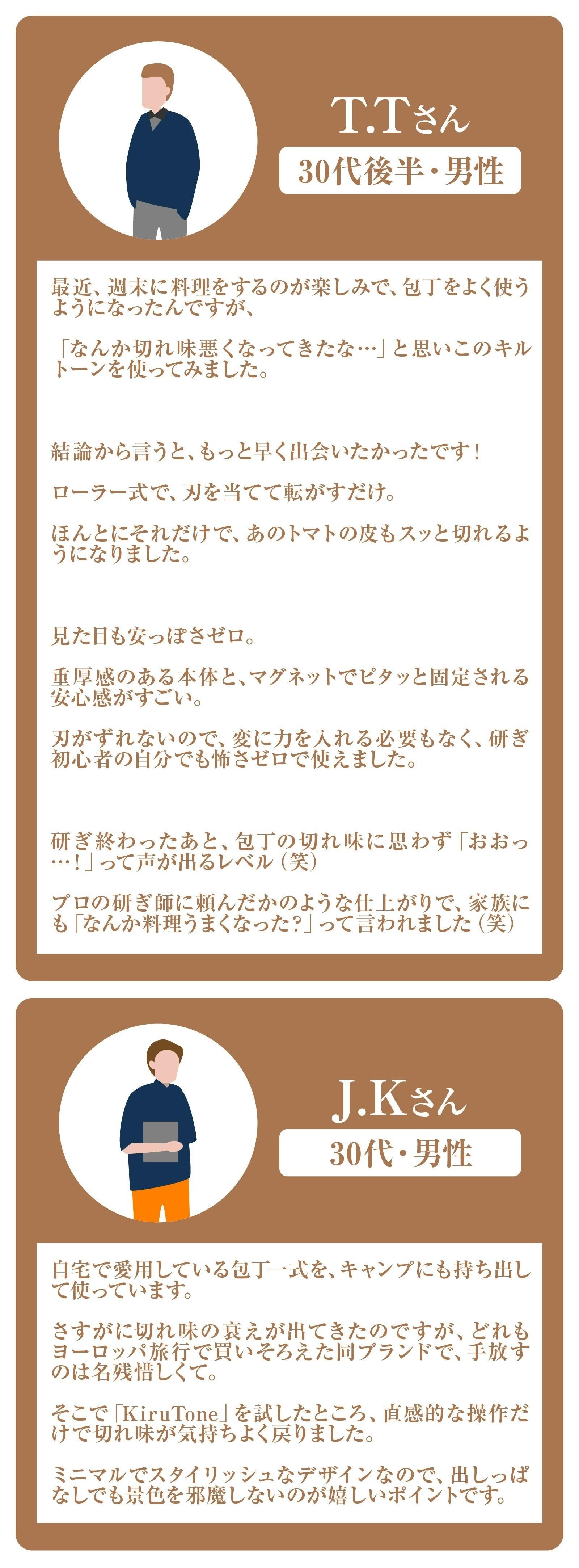 【KiruTone】は砥石ディスクで刃を「研ぐ」ので、キッチリと小刃付けできて愛用の包丁も長持ち。