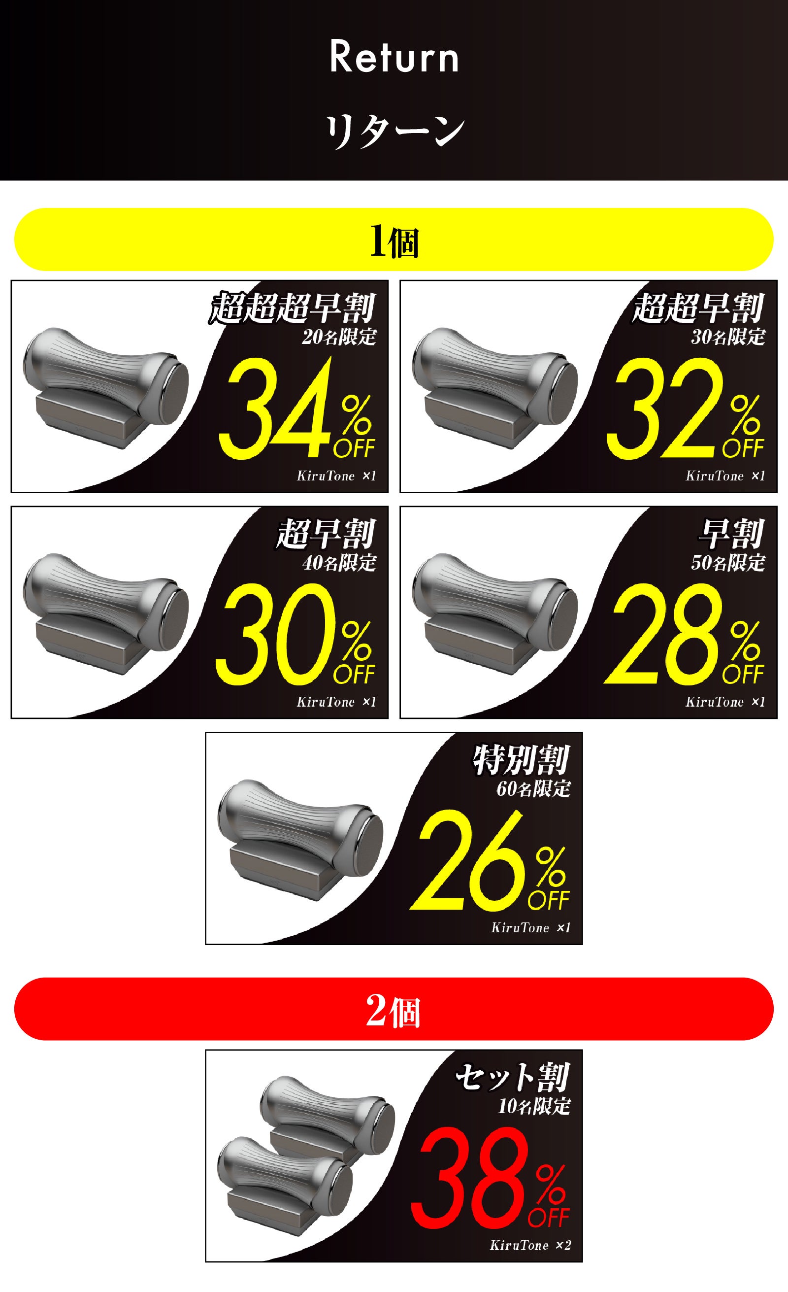 2026/04/11 18:00 こんにちは、KiruTone運営者です。 皆さまのご支援のお陰にて、支援総額100万円を達成できました。プロジェクト開始よりご支援いただきました皆さまには、改めまして御礼申し上げます。『本当にありがとうございます!』 お陰様でご好評いただいており、超超超早割、超超早割は完売してしまいましたが、今なら「超早割30%OFF」にてご購入いただけます!それでは、これからも[KiruTone]へのご支援を宜しくお願い申し上げます。 もっと見る