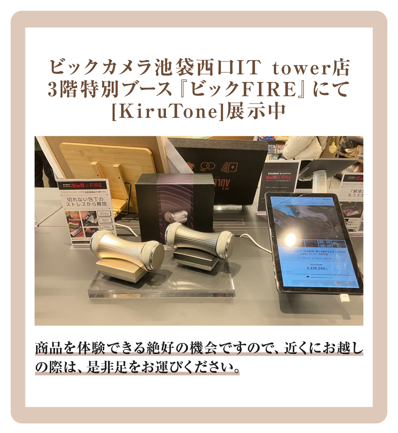 2026/03/25 12:30こんにちは、KiruTone運営者です。 公開日より大反響いただき、超超超早割と超超早割はあっという間に完売してしまいました。ご支援者の皆さま「本当にありがとうございます!」今なら「超早割30%OFF」にてご購入いただけますので、引き続きご支援の検討をお願い申し上げます。前回もお知らせしましたが、今話題のビックカメラ池袋西口IT tower店:3階特別ブース『ビックFIRE』にて[KiruTone]を展示いただいております。商品を体験できる絶好の機会ですので、近くにお越しの際は、是非足をお運びくださいませ!https://www.biccamera.com/bc/i/shop/shoplist/shop133.jspそれでは、これからも[KiruTone]を宜しくお願い申し上げます。 もっと見る