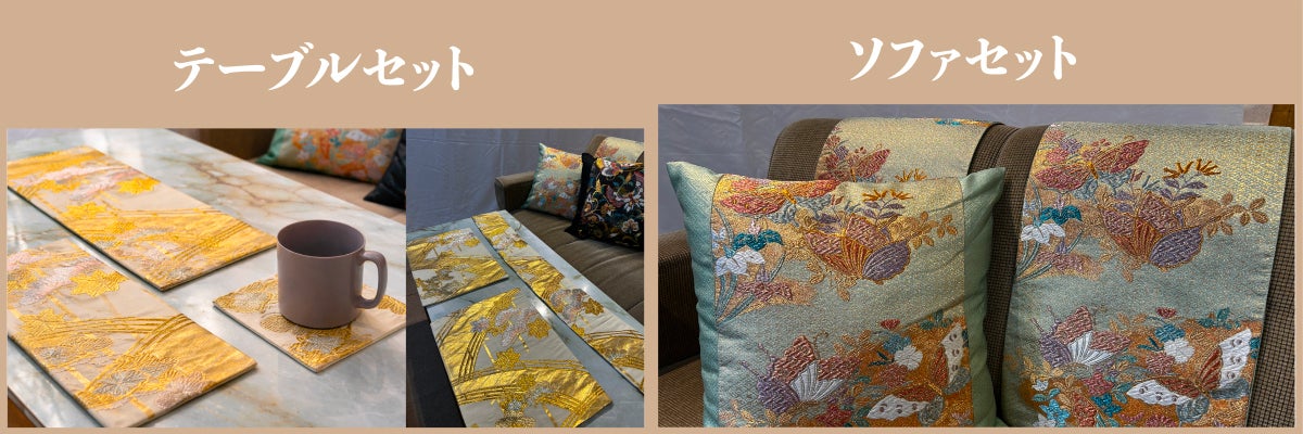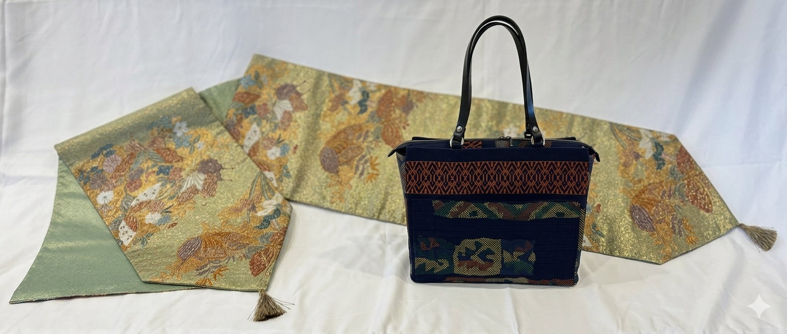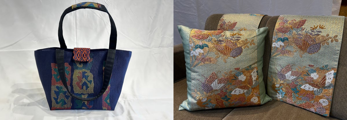 お母さんと一緒に買った振袖が毎日持ち歩くバッグに、お母さんの着物が特別な日に着れるワンピースに、お祖母ちゃんの帯が部屋を彩るクッションやテーブルライナーに。
