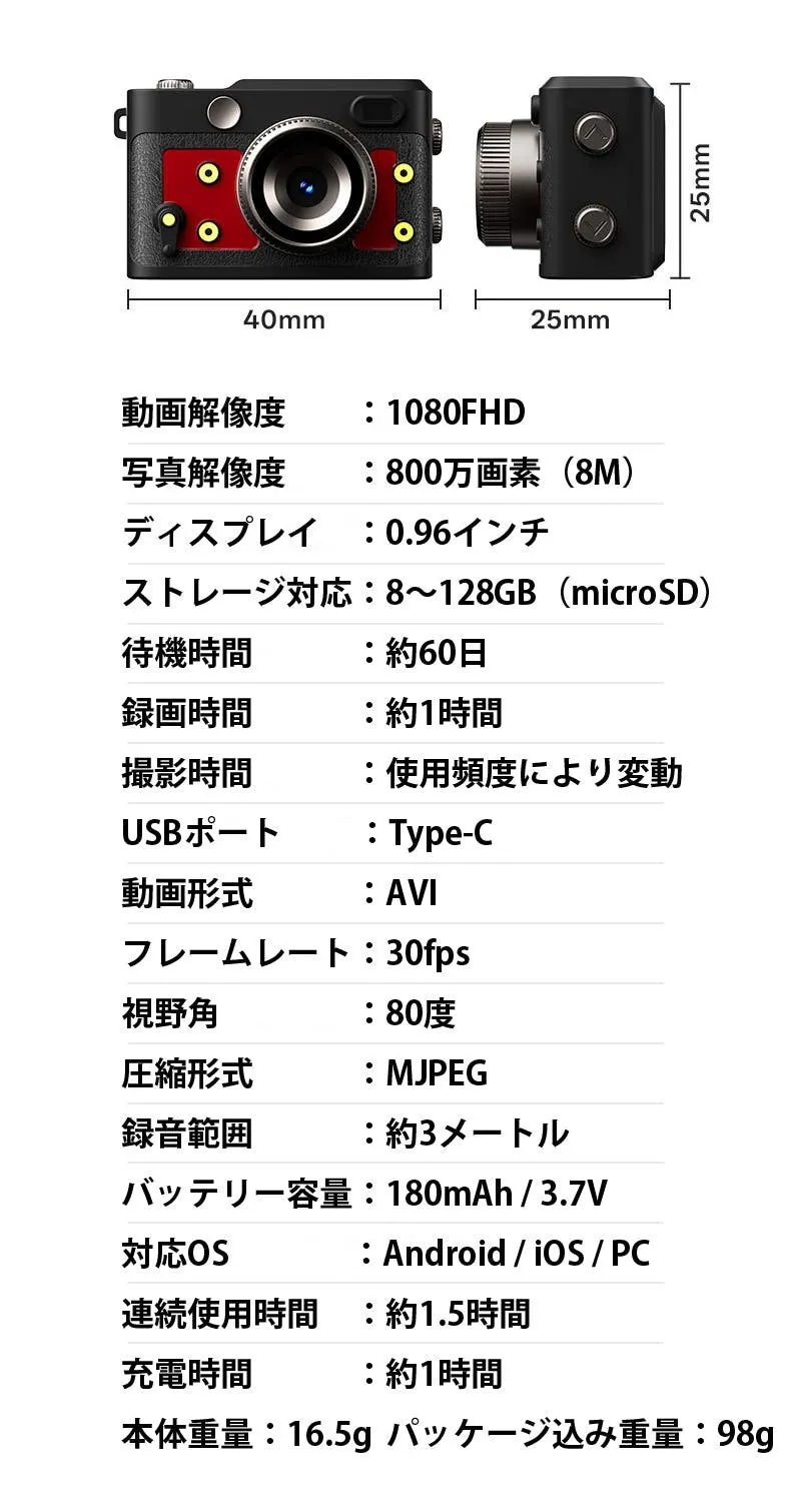 本製品はわずか16gの超軽量設計で、カバンやポケットはもちろん、キーホルダーやネックレス感覚で身につけられるため、どこへでもストレスなく持ち運べて、撮りたい瞬間を逃しません。