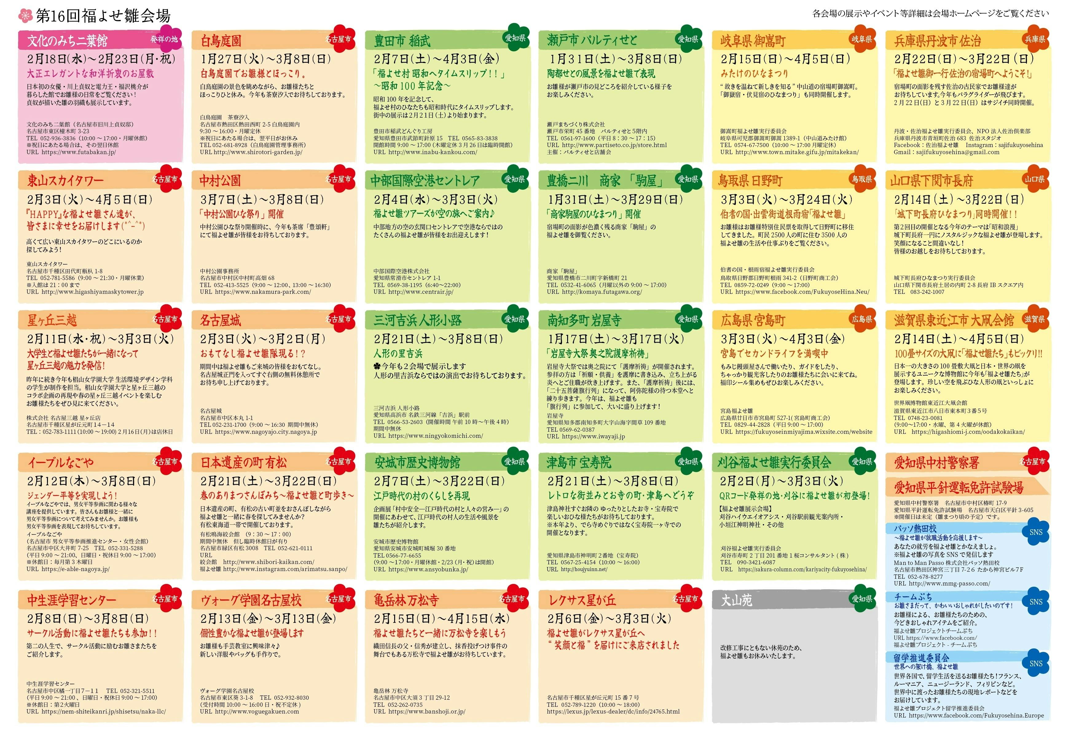 そんなデビュー当初の参加会場は4か所でした。しかし現在では、「福よせ雛プロジェクト」は理念を共有する皆様に支えられ、順調に参加会場も増えていき32か所となりました。
