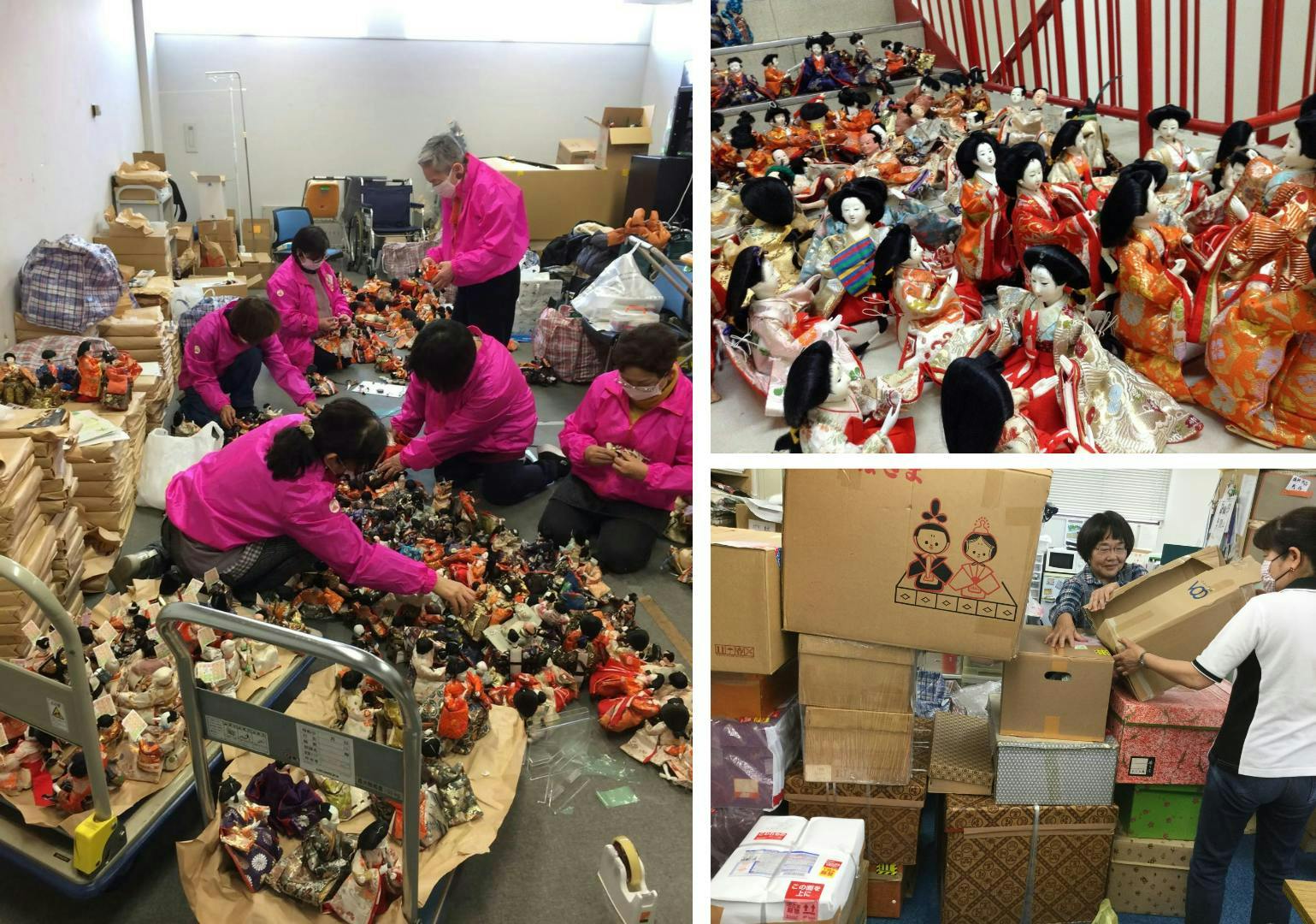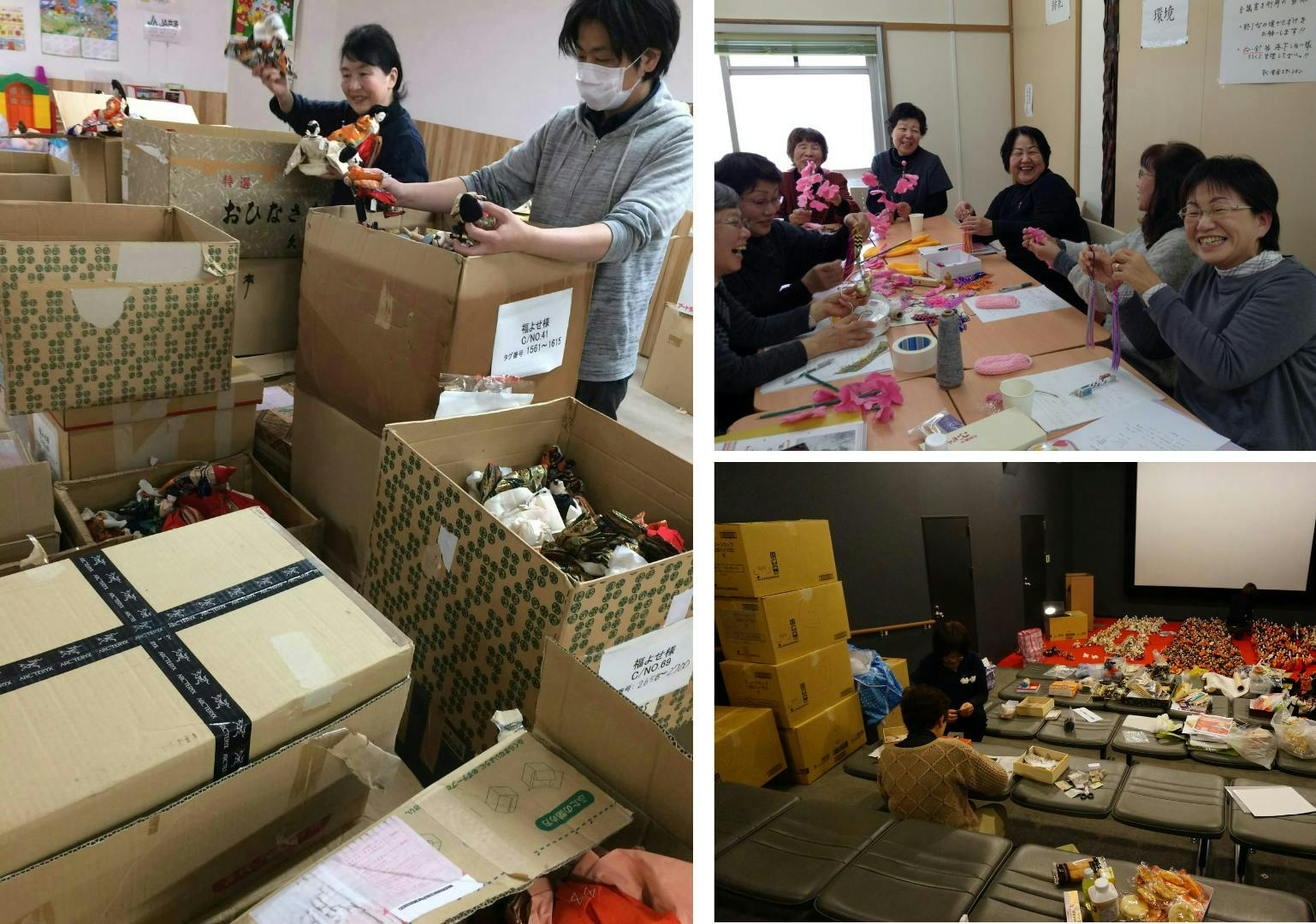 各地の参加会場も地域のボランティアさん達に支えられています。そして全国からプロジェクト本部に送られ預託されたお雛様の数は10万体を超え、「福よせ雛」として再資源化されたお雛様たちが、少しづつ全国へそして世界へと旅立って行きました。