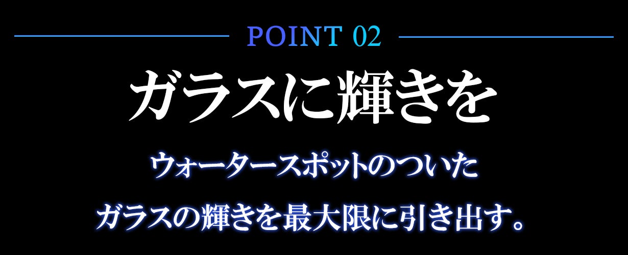 車のガラスに付着した白いシミは、特に夜間に光を乱反射させ、視界を曇らせます。それは運転の快適さだけでなく、安全性にまで影響を与える重大な要因です。本製品はボディだけでなくガラスにも使用でき、透明感を蘇らせてクリアな視界を確保。