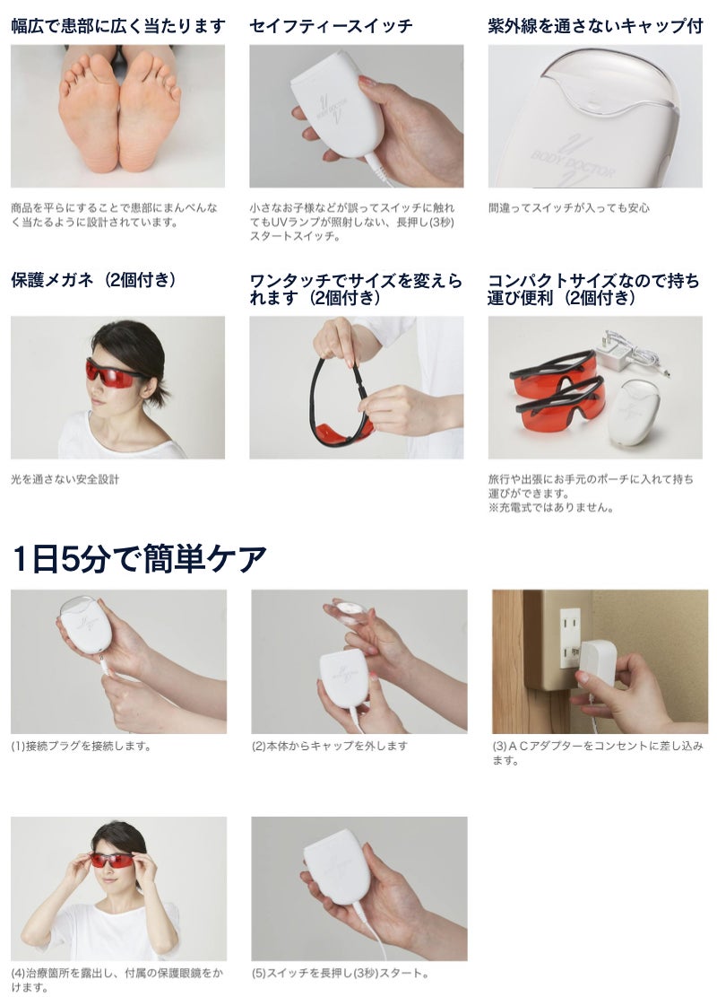 「ボディードクターUV 2」は家庭用紫外線治療器です。水虫やワキガを痛みが無く簡単ケア。白癬菌はカビによって生ずる感染症です。