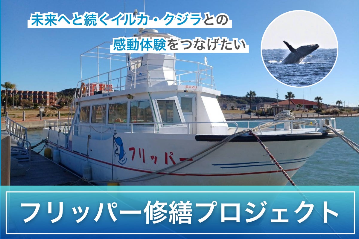 イルカとの出会い、銚子の海との出会い、人との出会い。イルカウォッチングを通して、 銚子を訪れる皆さんに、素晴らしい出会いと感動をこれからもお届けするため、「フリッ パー号修繕プロジェクト」への皆様のご支援をお願いします。