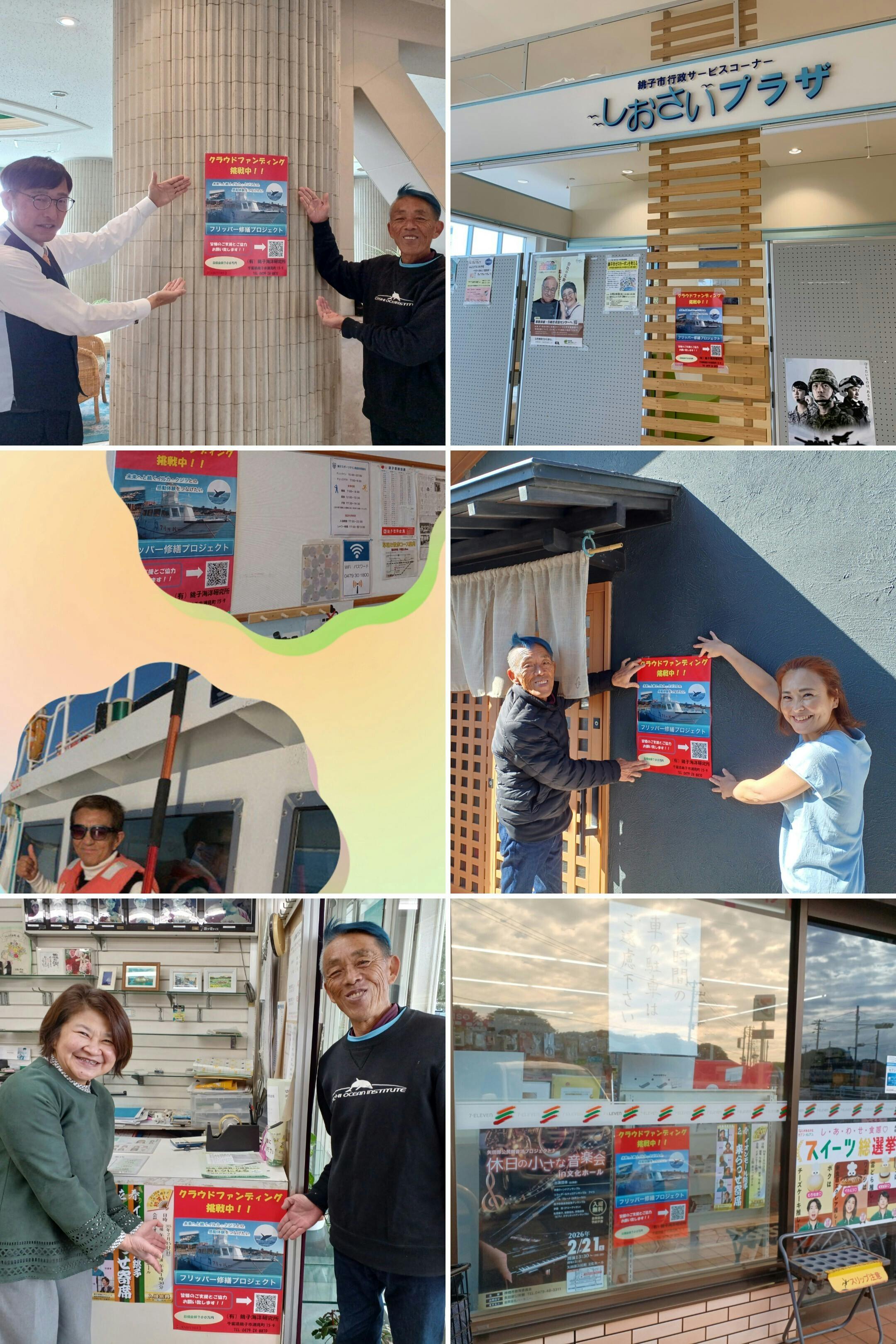イルカとの出会い、銚子の海との出会い、人との出会い。イルカウォッチングを通して、 銚子を訪れる皆さんに、素晴らしい出会いと感動をこれからもお届けするため、「フリッ パー号修繕プロジェクト」への皆様のご支援をお願いします。