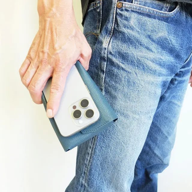 未収能時の厚みは約22㎜。クラッチーノネクストより少しだけ厚くなりました。クラッチーノが15㎜でしたのでそれほど気にならないと思います。もちろんカード、お札をたくさん入れると厚くなります。