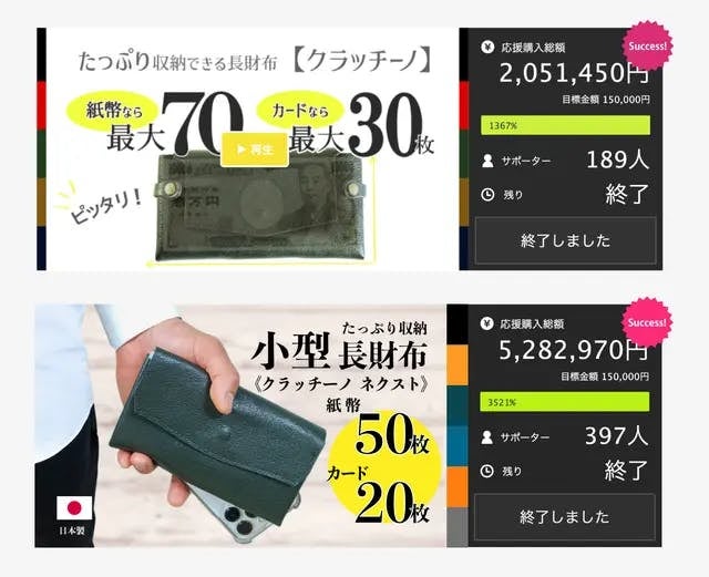 国内先行キャンペーンにて多くの支援者様にご支援いただいた「クラッチーノ」「クラッチーノ ネクスト」手前味噌ではありますが、17cmの小型長財布ながら大容量なのが評価されたかと思います。サイズ感はそのままに、シンプル イズ ベストを基本に、こだわりである大容量の紙幣ポケットカード入れに、今回は大きく開く小銭入れにアレンジした新商品を開発しました