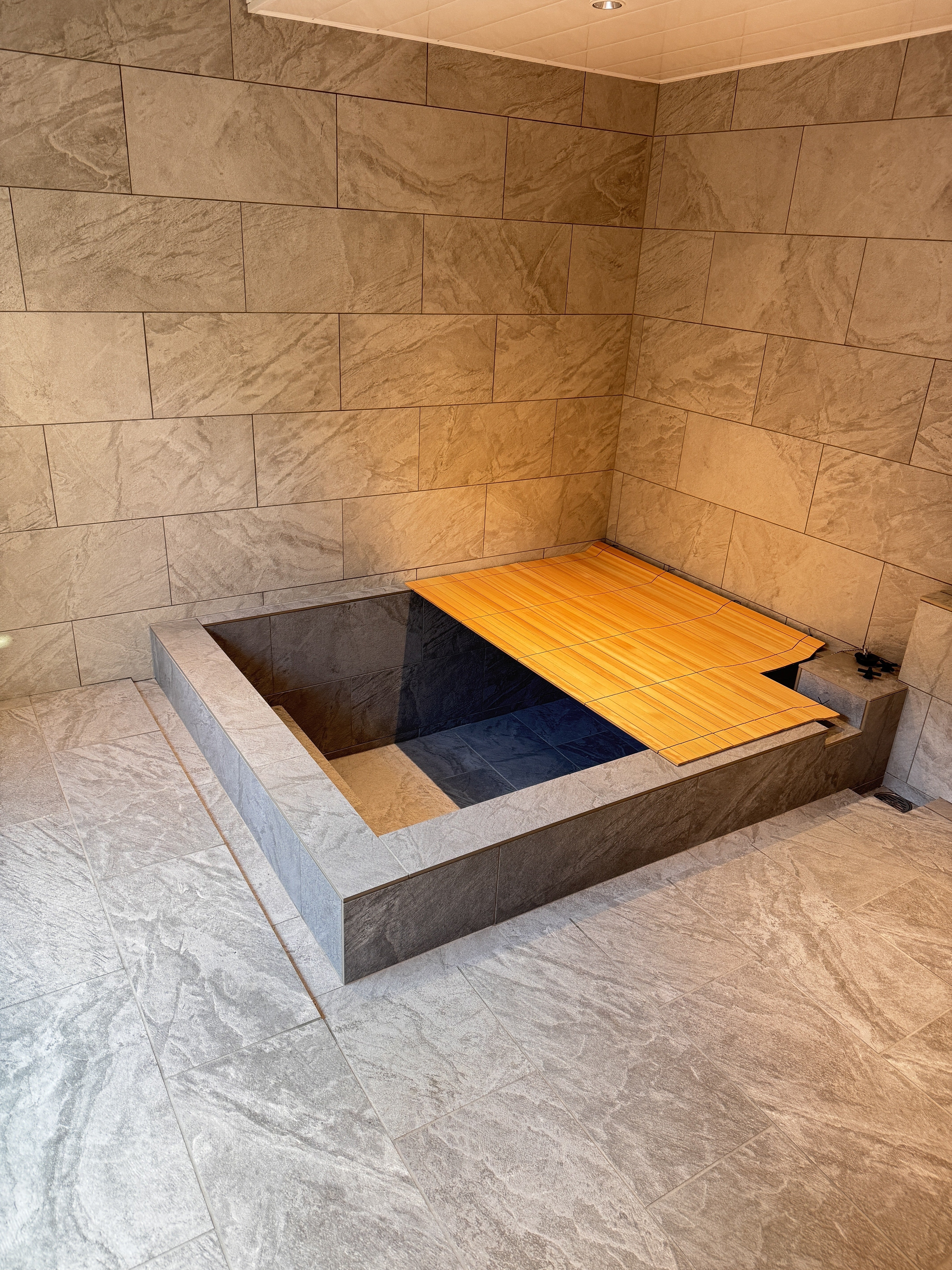 里音のお風呂が完成しました。家族で入れる大きさです。