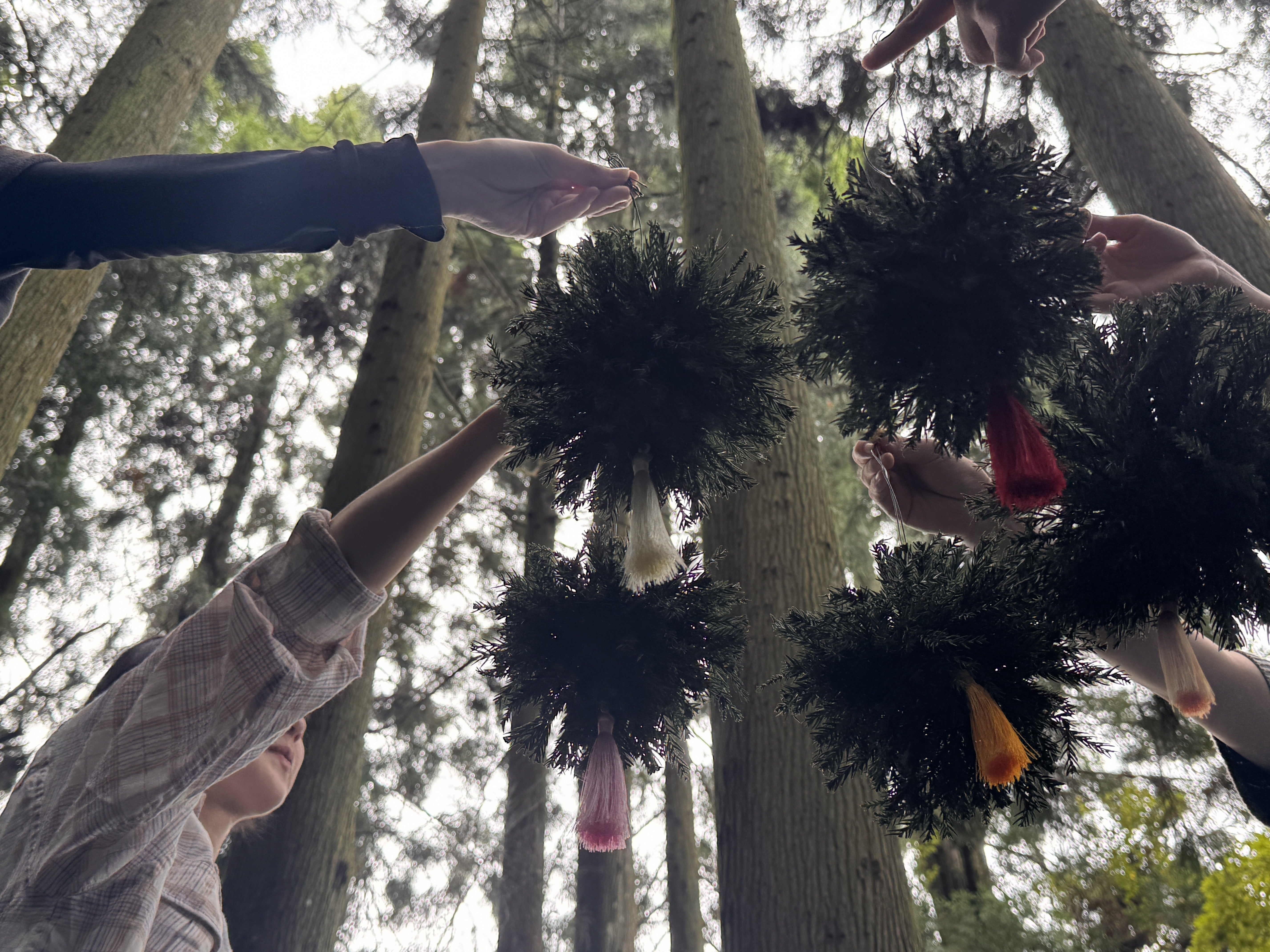 竹は近隣の竹藪から当日伐採します。昨年は杉玉も作ってみましたぁ~笑