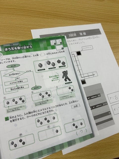 15時以降のアフター教室・マインクラフトのプログラミング教室にて、PCの学習とあわせて学習ドリルとプリント学習を行っています。PC学習の予習、復習として活用し、生徒様のスキルアップを目指しています。