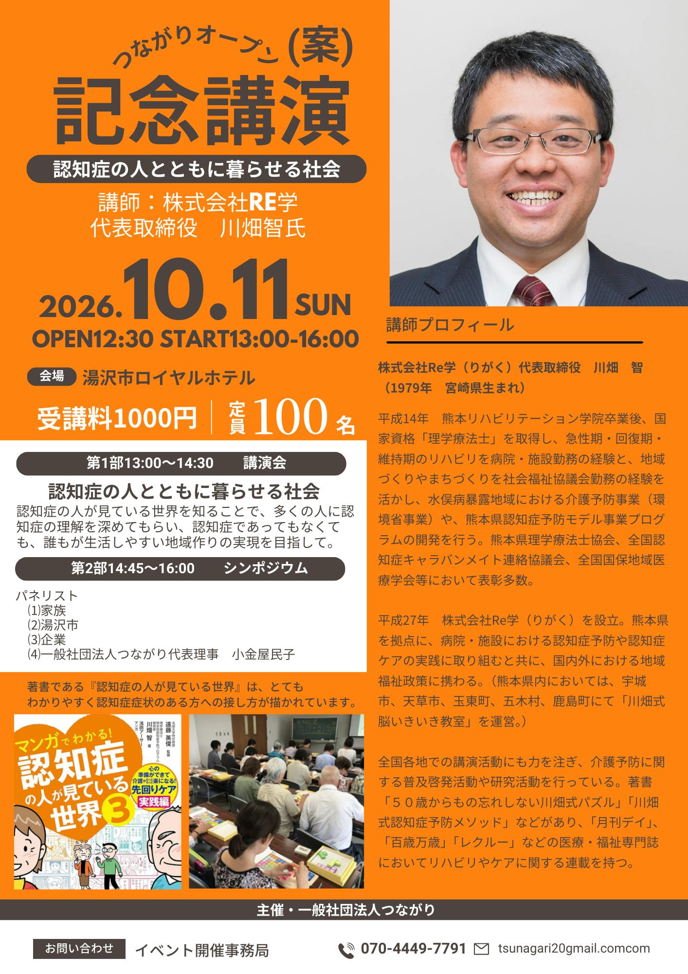 10月11日(日)オープン記念講演の講師が決定いたしました‼
