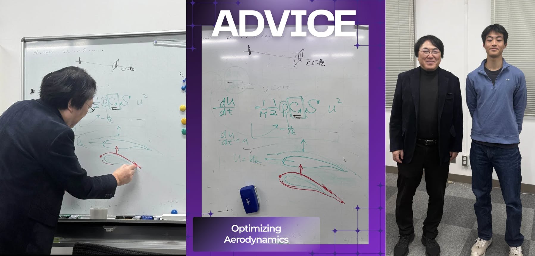 独学の域を超えるため、東京大学の教授から空気力学(エアロダイナミクス)の専門的な助言を受けています。さらに、大学講義で使用される空気力学・機械工学の資料や論文をもとに、