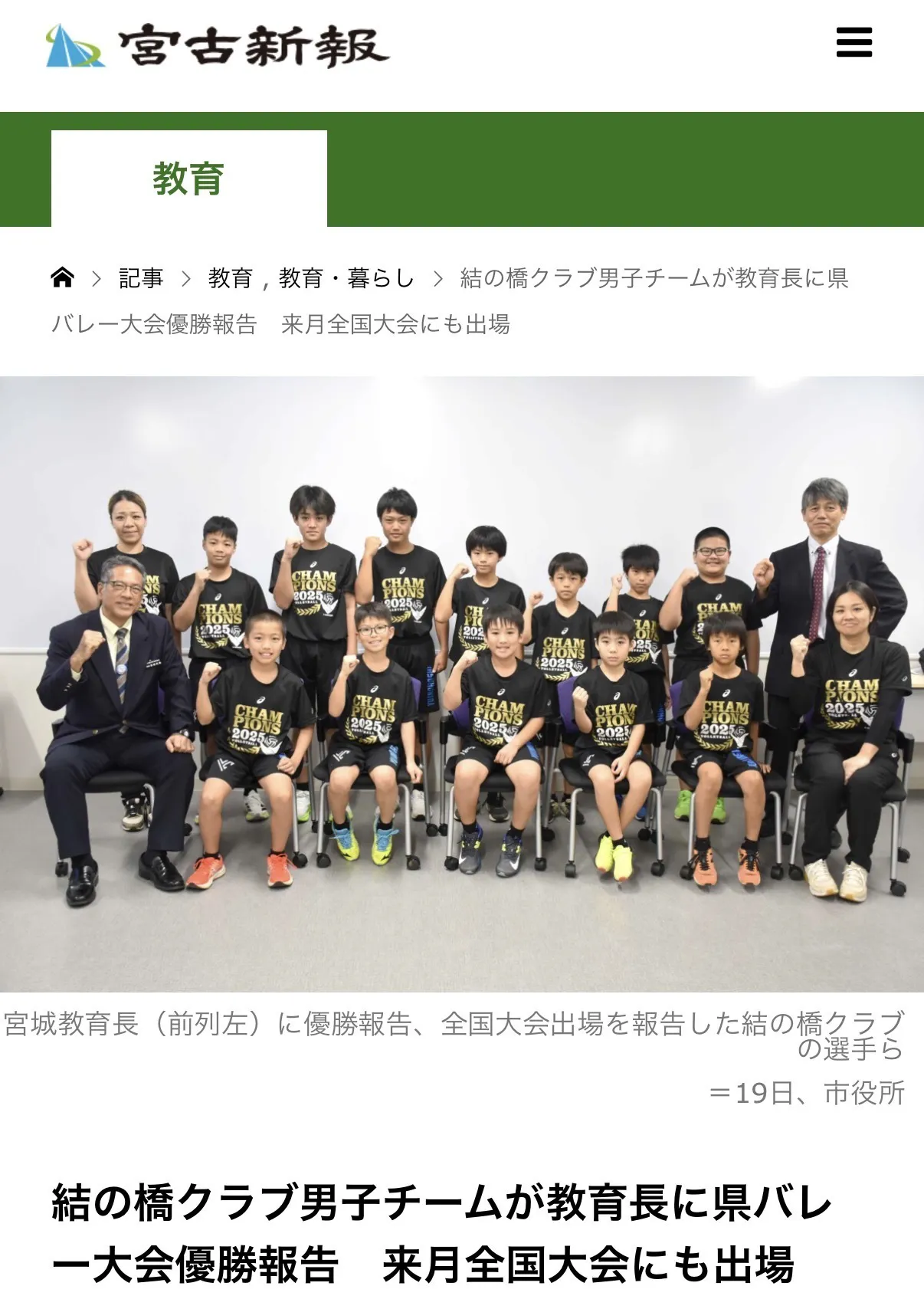 昨日、T-FIVE CUP・りゅうぎんカップ優勝による二冠達成、そして全国大会出場のご報告のため、宮古島市教育長のもとへ表敬訪問をさせていただきました。