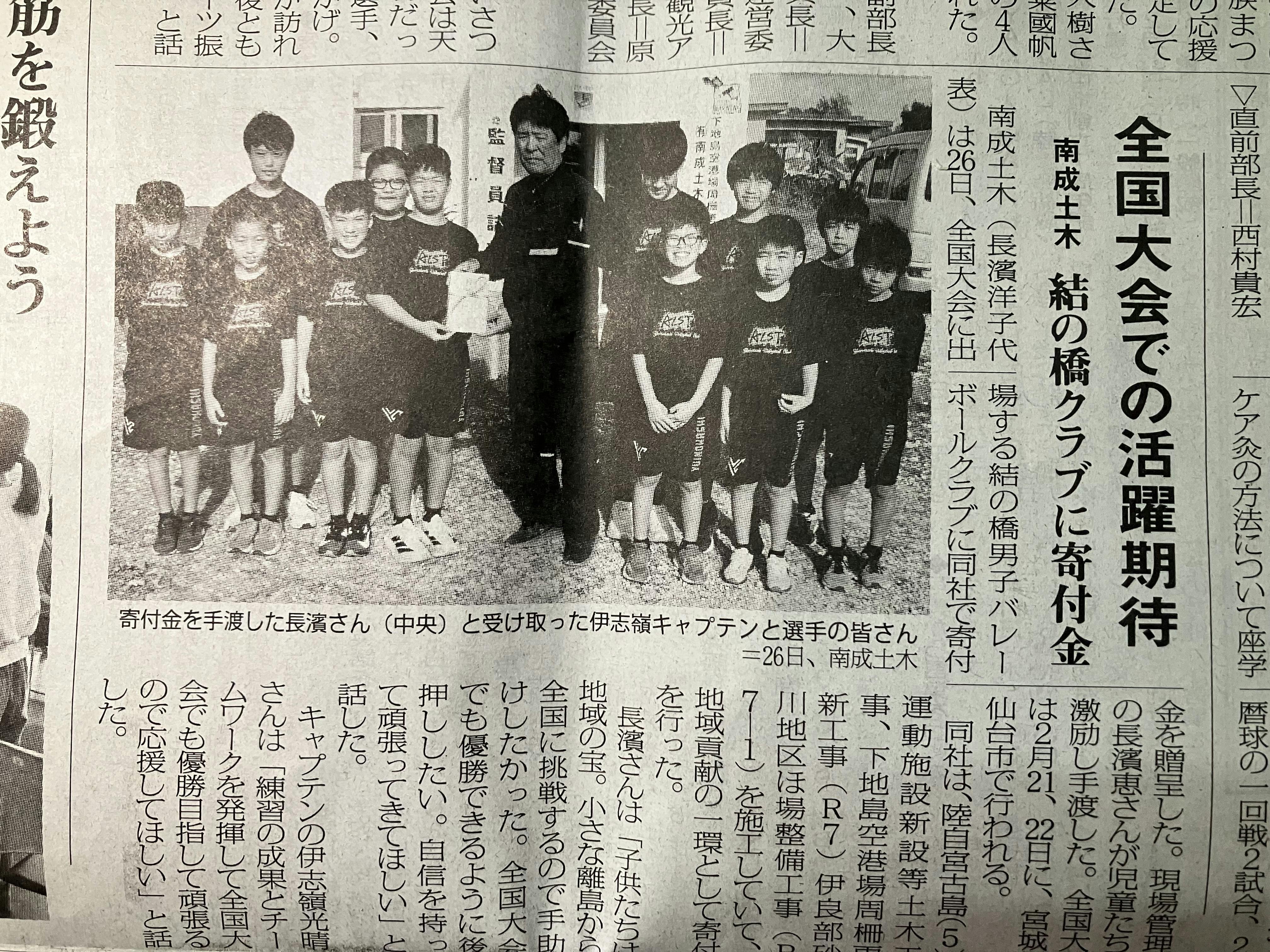 このたび、地元企業、有限会社 南西土木様より、全国大会に向けた活動費・遠征費として、温かいご支援をいただきました。
