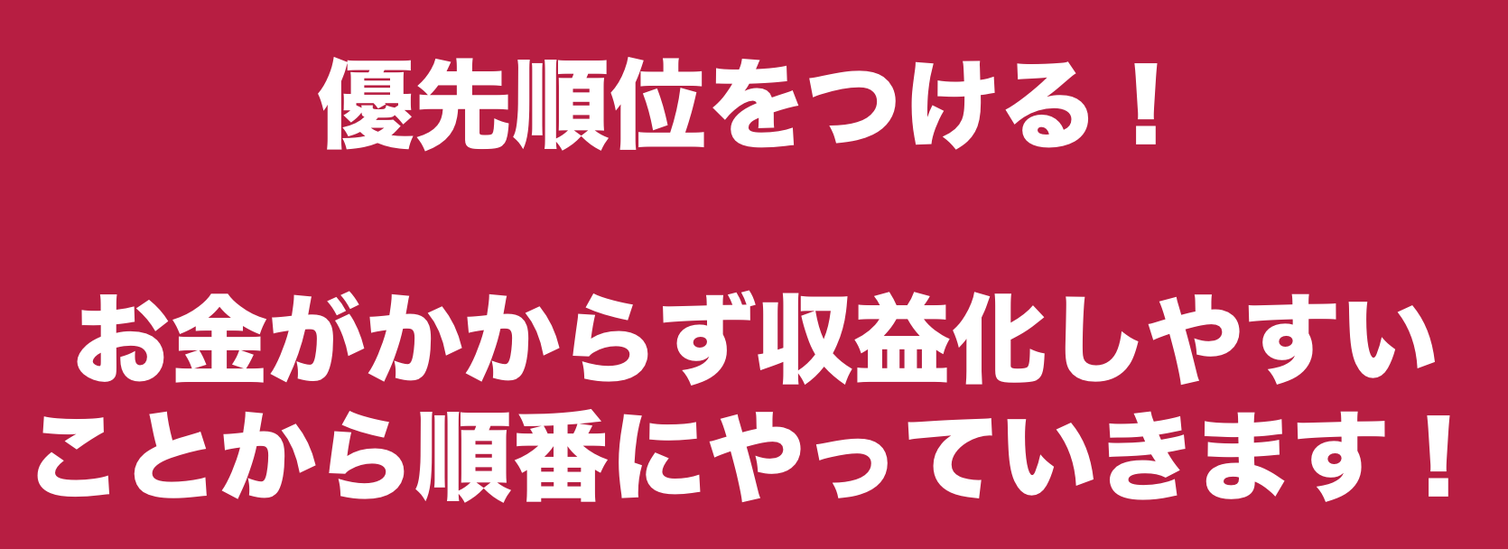 まず、やりたい事業に優先順位をつけました。キャンプファイヤーでは、優先順位1位の事業のみ説明します。(他の事業にも興味がある人は、個別に連絡してください。)