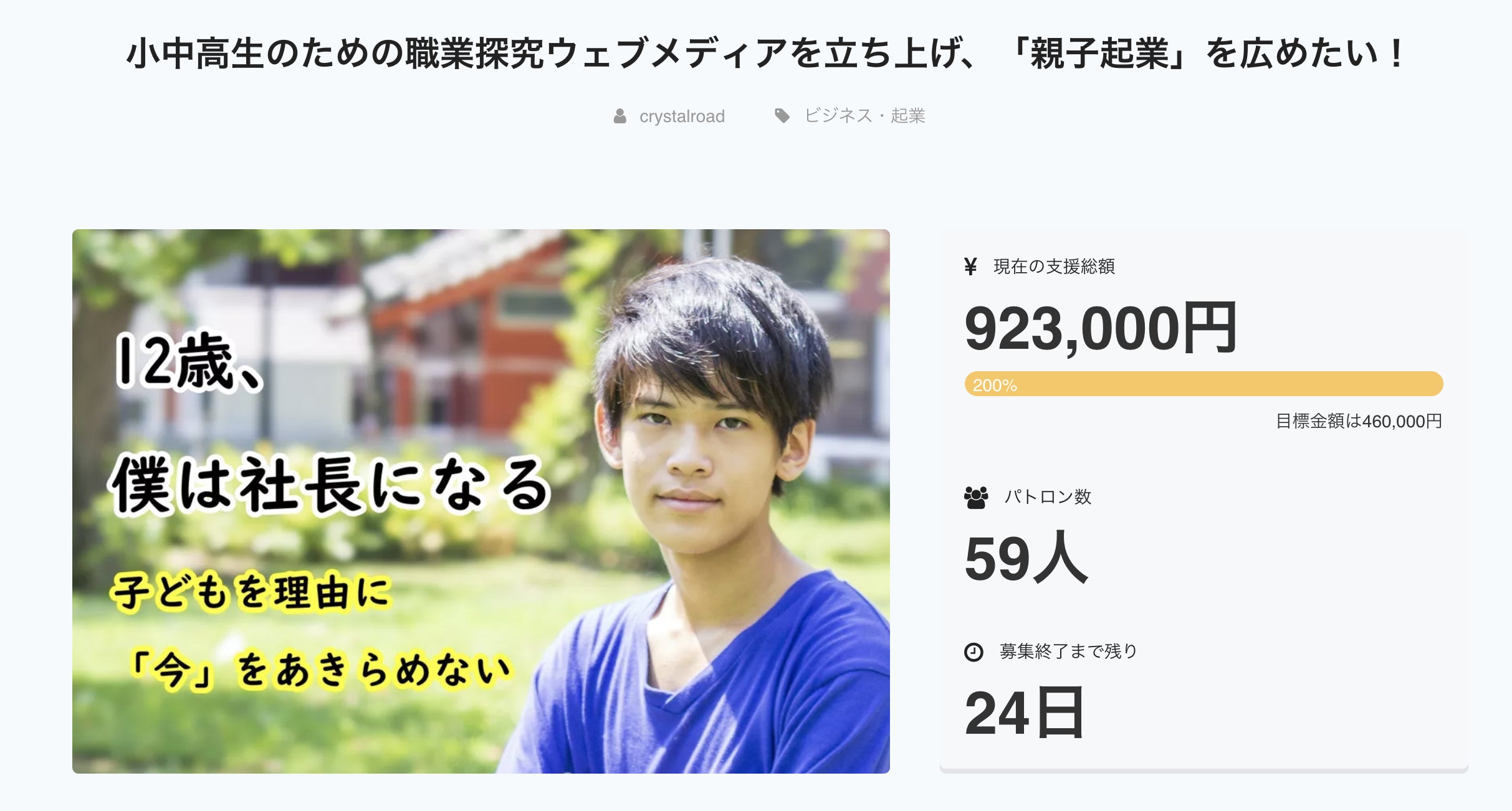 みんさん、応援ありがとうございます。本日、支援金額が92万円を超えました。目標金額の200%を達成しました。本当にありがとうございます。